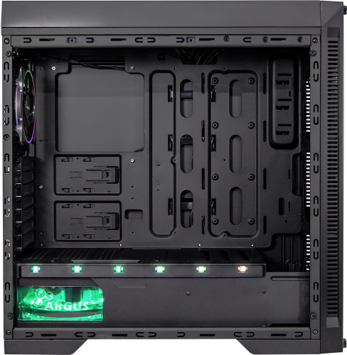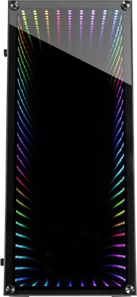 Ein durch RGB-LEDs beleuchteter Unendlichkeitsspiegel in der Front, eine RGB-LED-Leiste im Netzteiltunnel sowie drei 120 mm RGB-Lüfter machen das X-908 Infini2 zu einem wahren Eye-Catcher. Die Front aus Tempered Glass sowie das Seitenteil aus 4 mm starkem Tempered Glass geben dabei einen großzügigen Einblick auf starke Effekte und Farben, welche sich durch einen Schalter an der Front oder über den 5V RGB-Header Anschluss (adressierbare RGB-LEDs) verwalten lassen.