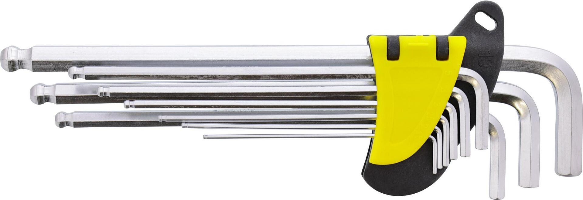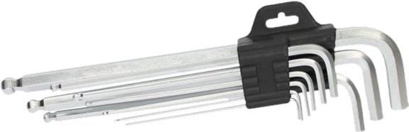 Sechskant Schlüssel-Set, lang, 9-teilig• mit Kugel-Sechskant an der langen Seite• Größen: 1,5, 2, 2,5, 3, 4, 5, 6, 8, 10mm• Länge von 9,5cm bis 22cm