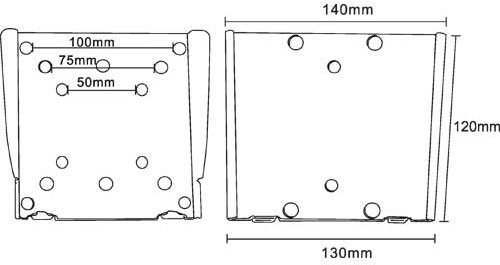 • Für Befestigungen VESA 50x50, 75x75, 100x100mm