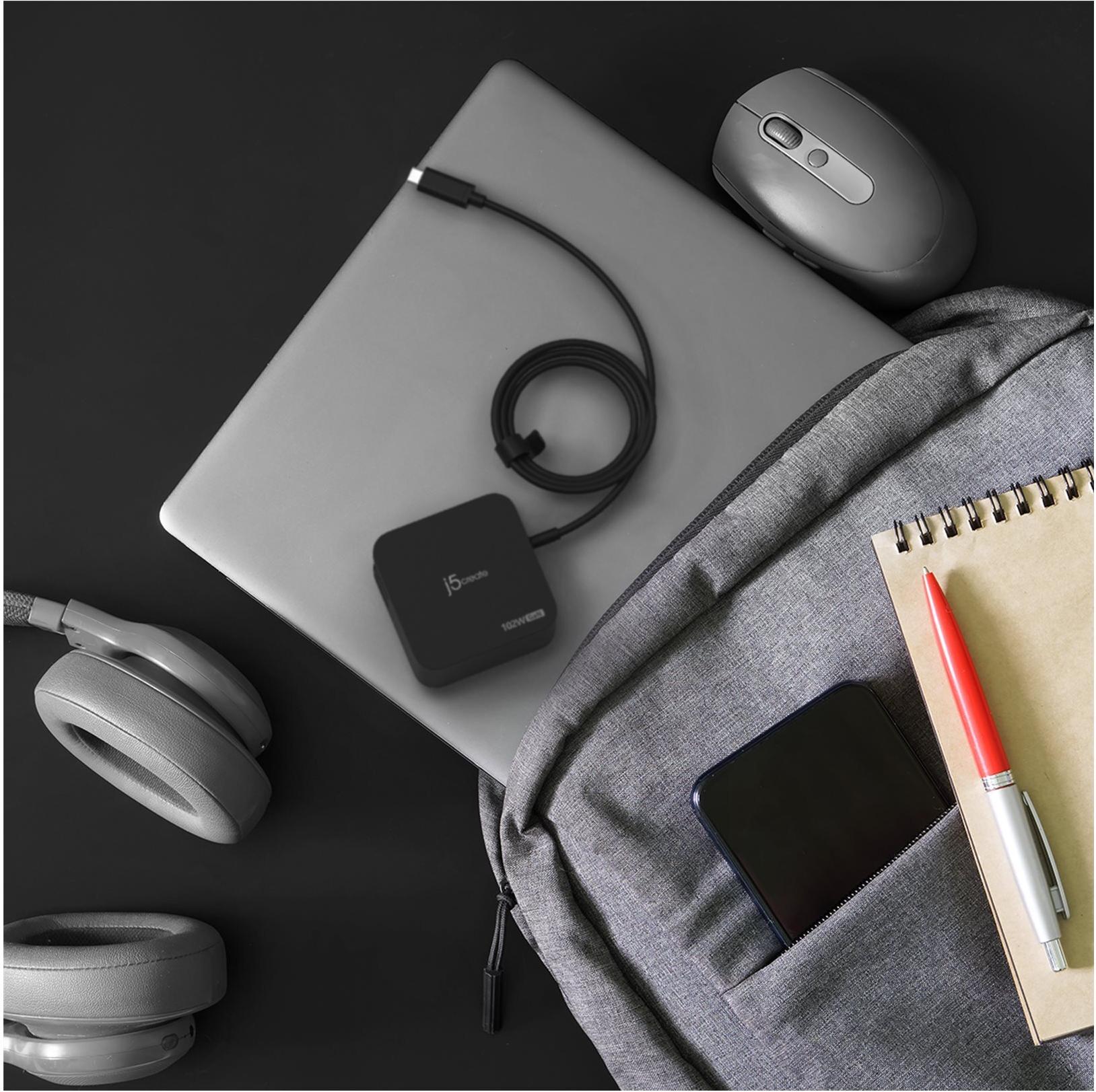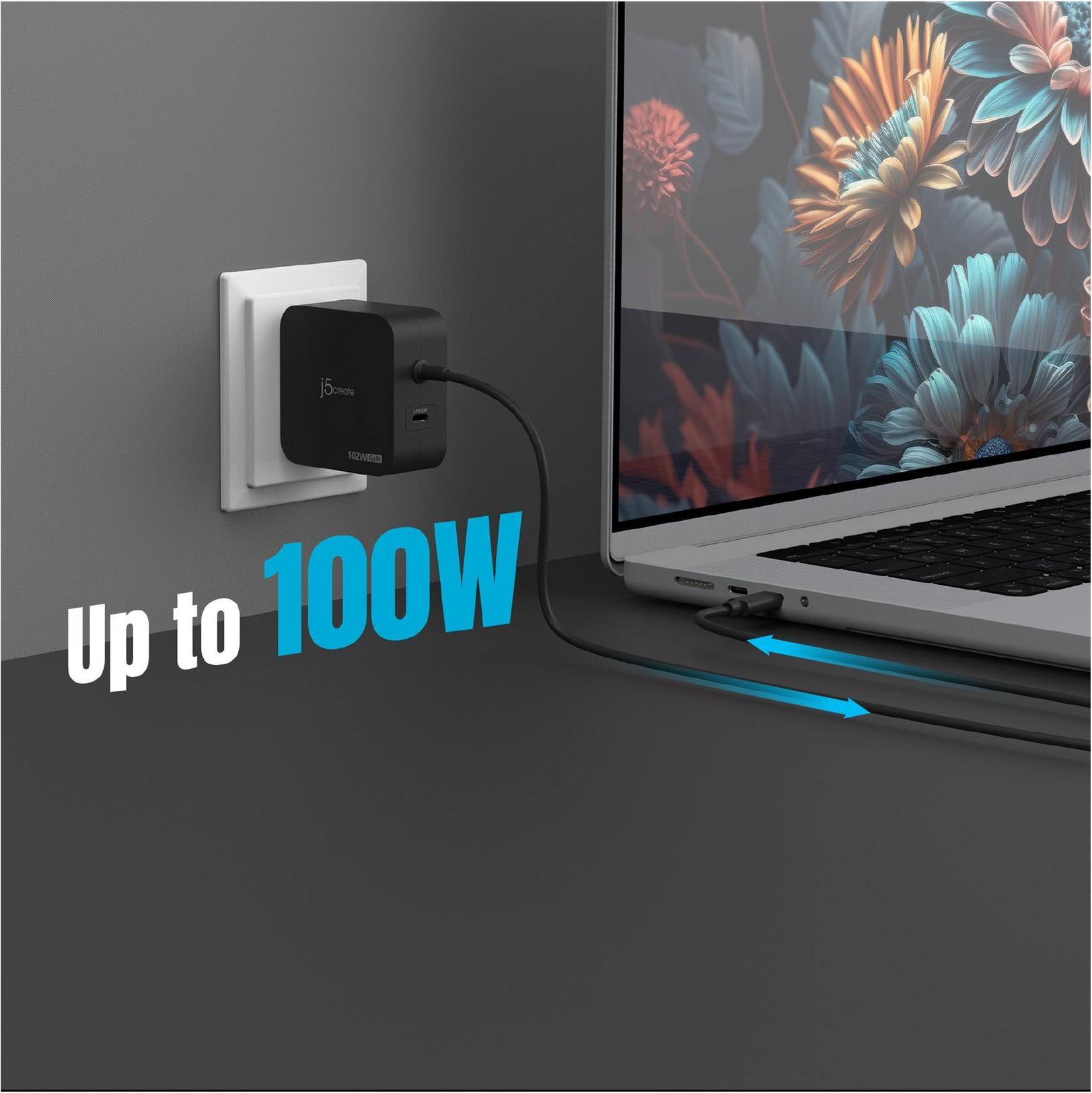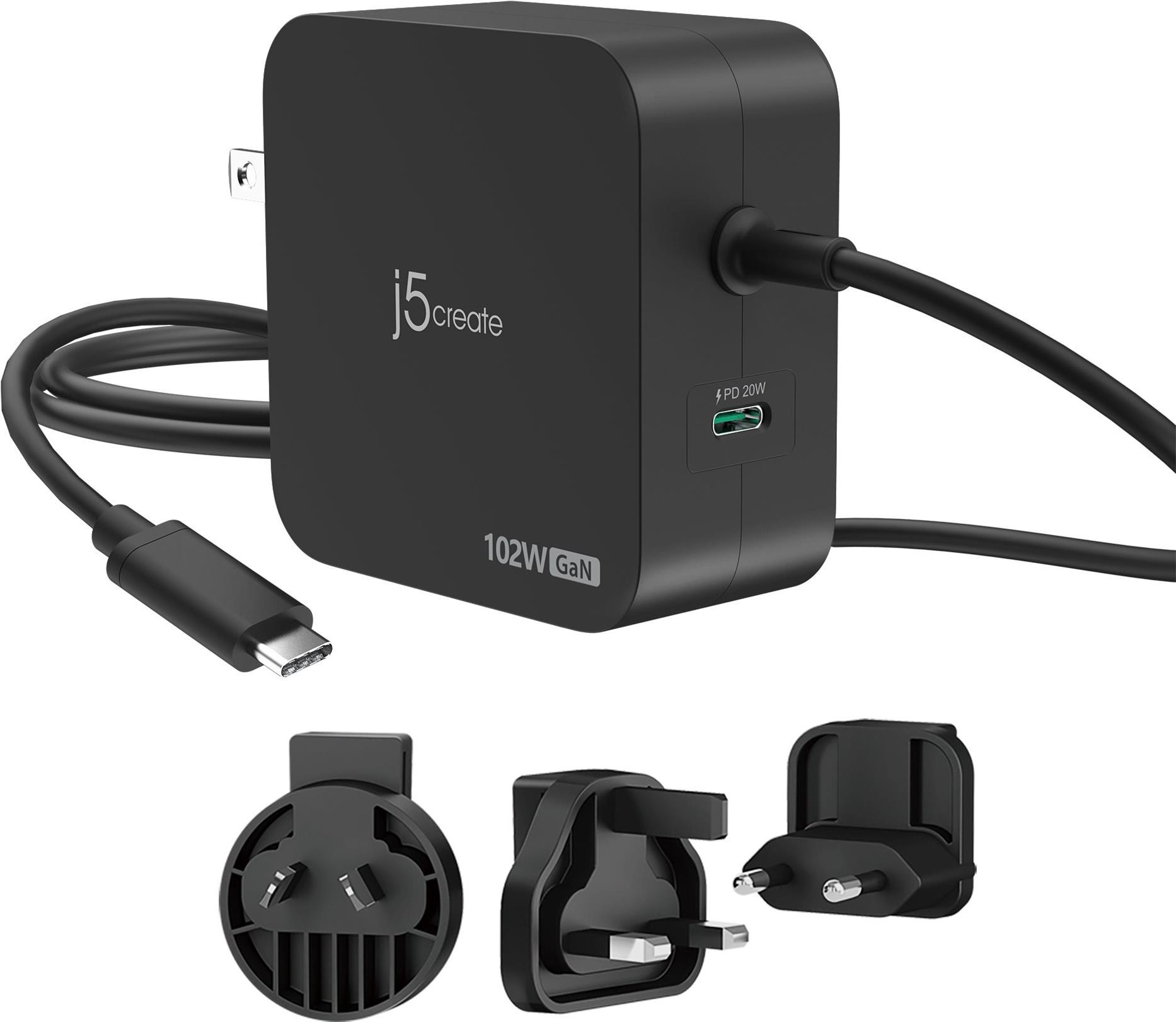 j5create 102-Watt-GaN-PD-USB-C-Reiseladegerät mit 2 Anschlüssen, einschliesslich austauschbaren Netzs (102 W) Schwarz (JUP25102V-N)