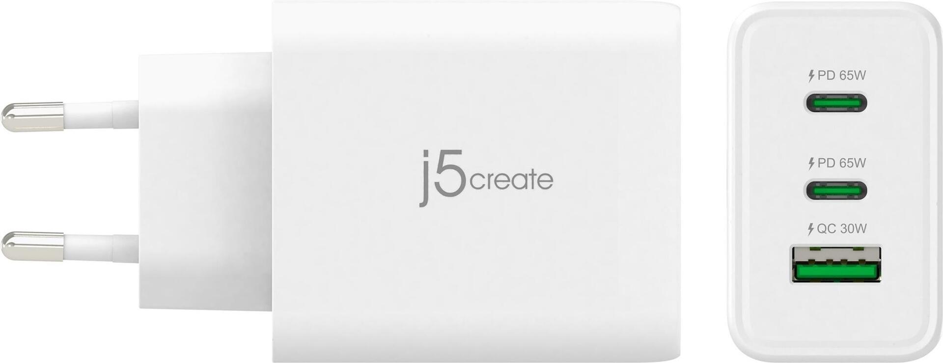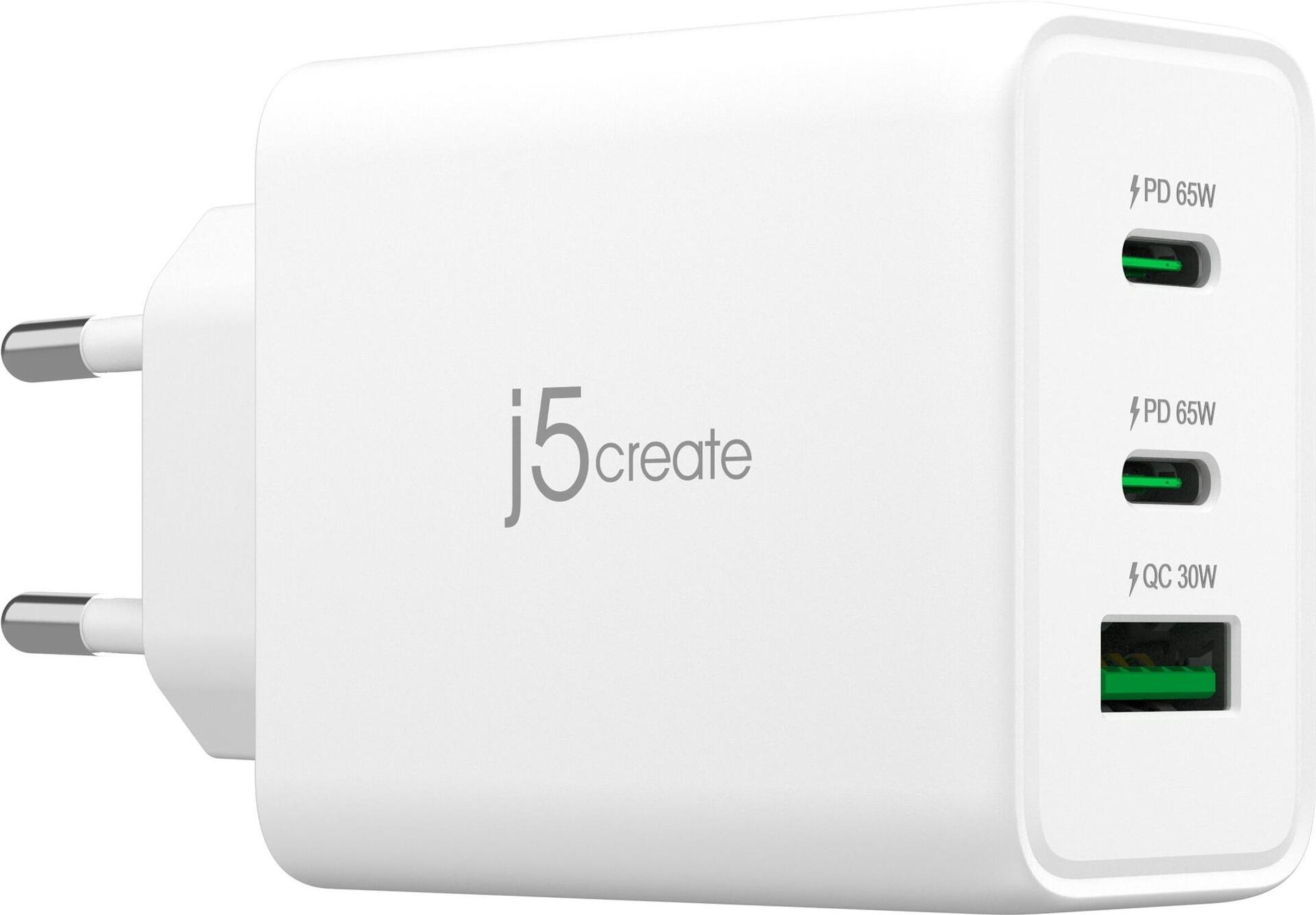 j5create 65W GAN USB-C 3-PORT CHARGER EU (JUP3365-EN)