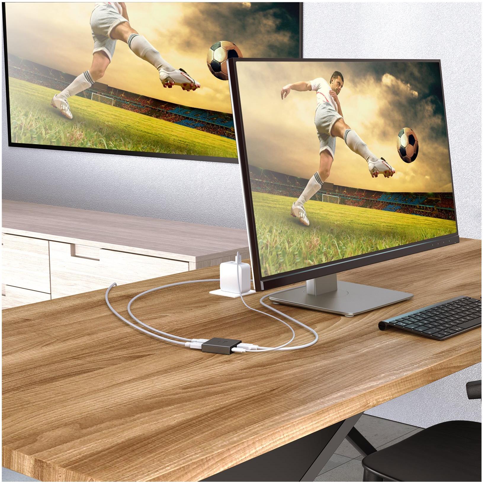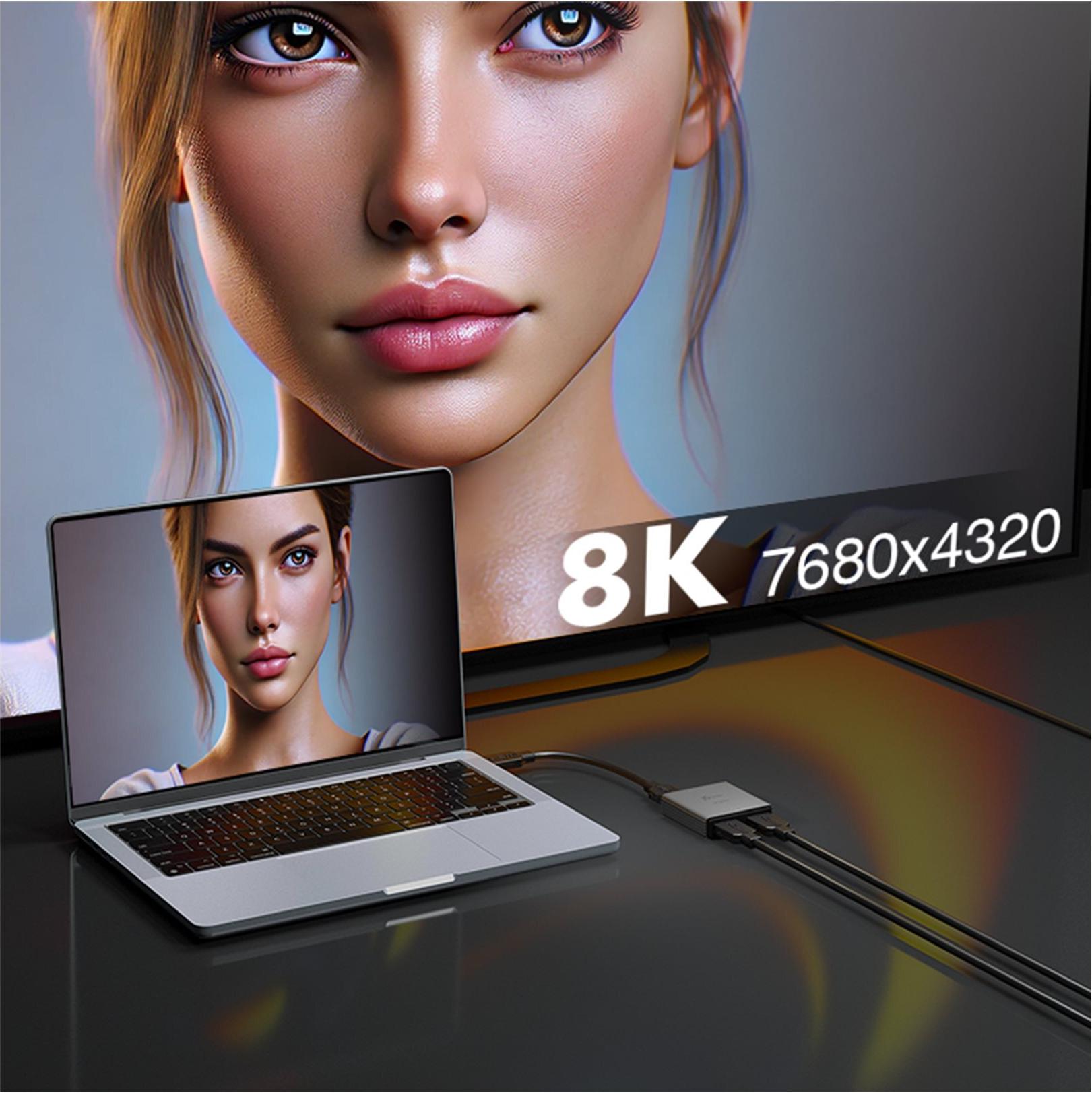 Er unterstützt beeindruckende Auflösungen von bis zu 8K@60Hz, 4K@120Hz und ist abwärtskompatibel mit 1440p@240Hz, 1080p@240Hz. Funktioniert mit Fernsehern, Monitoren, Projektoren und anderen Displays.