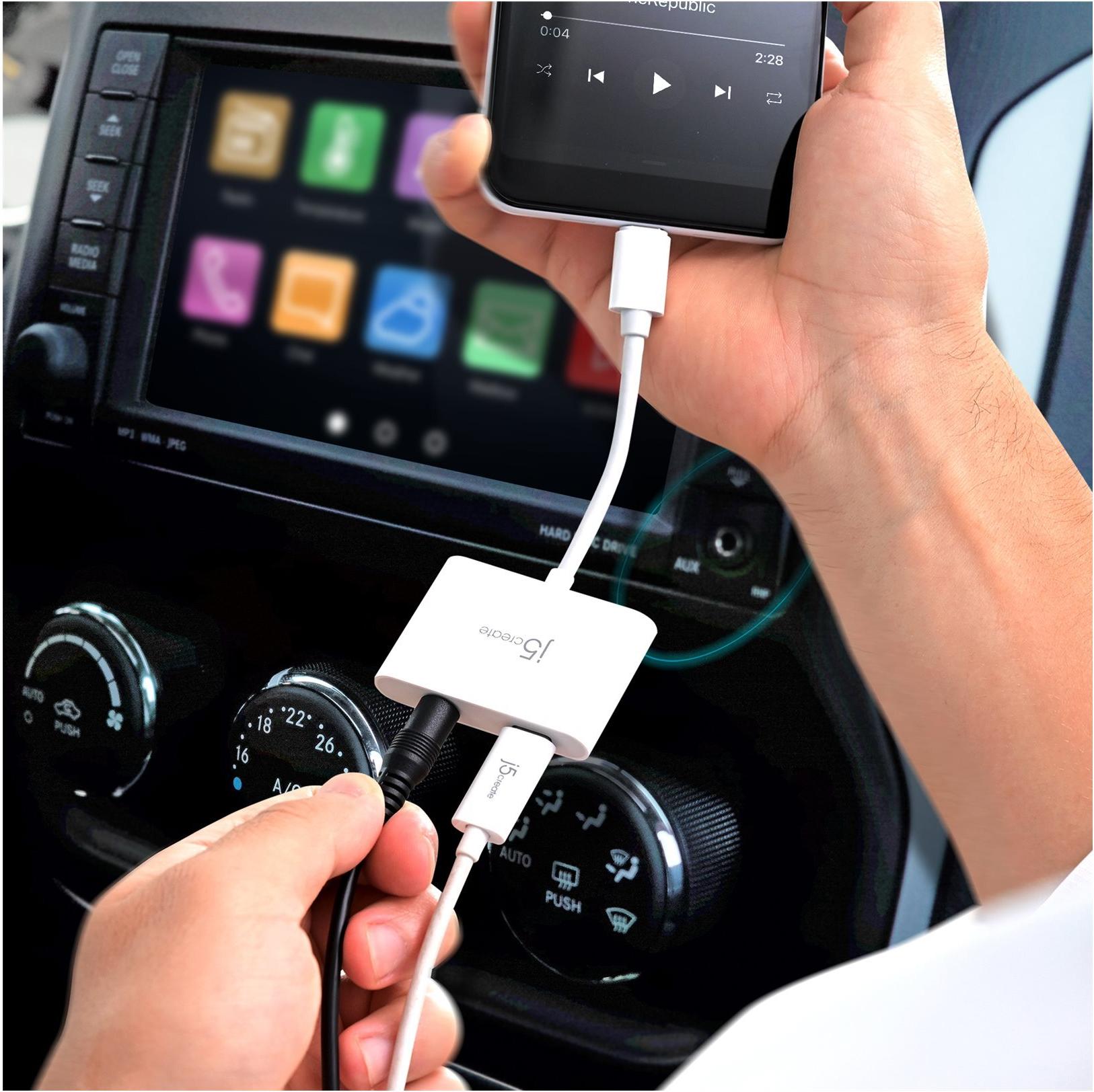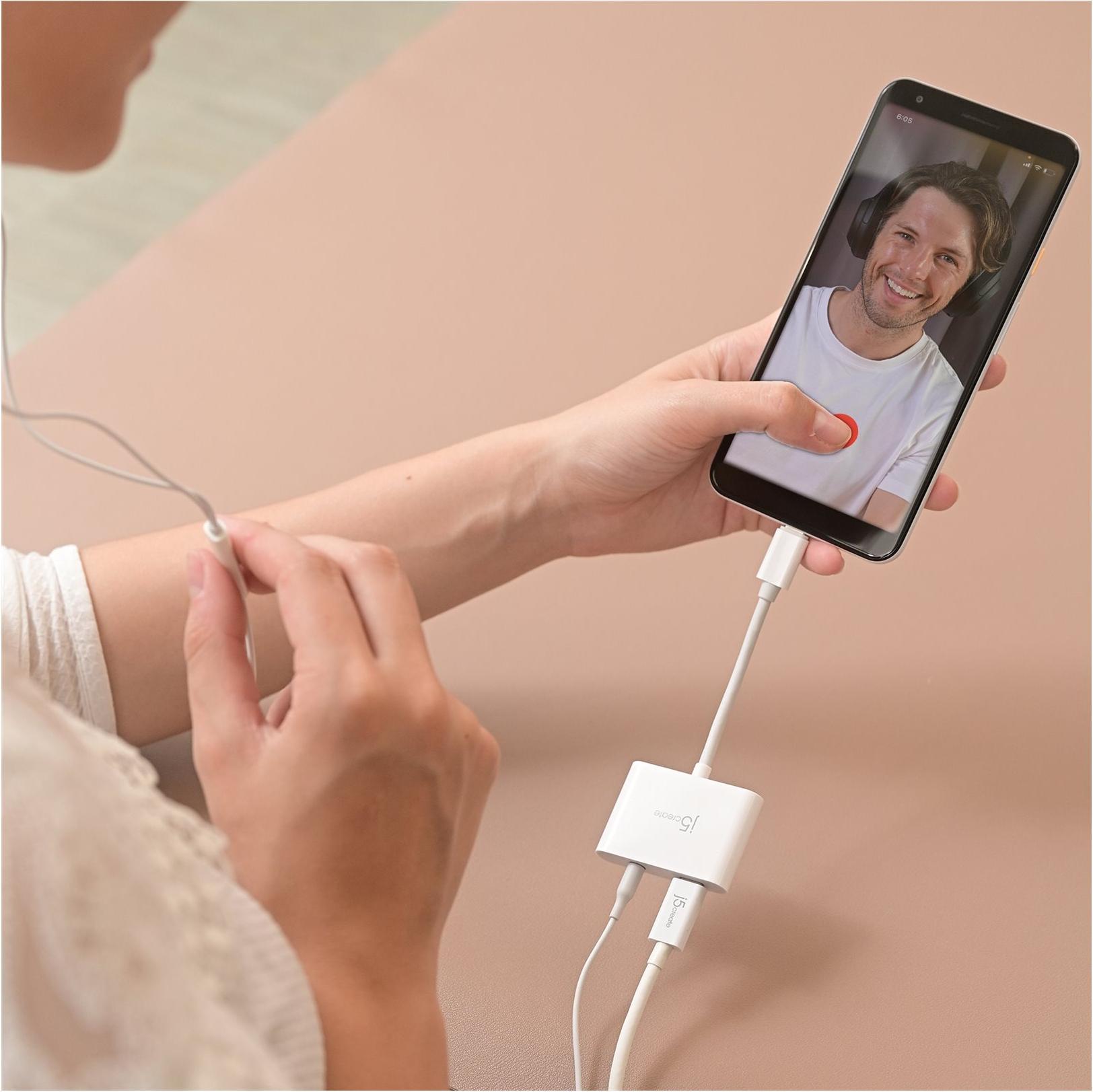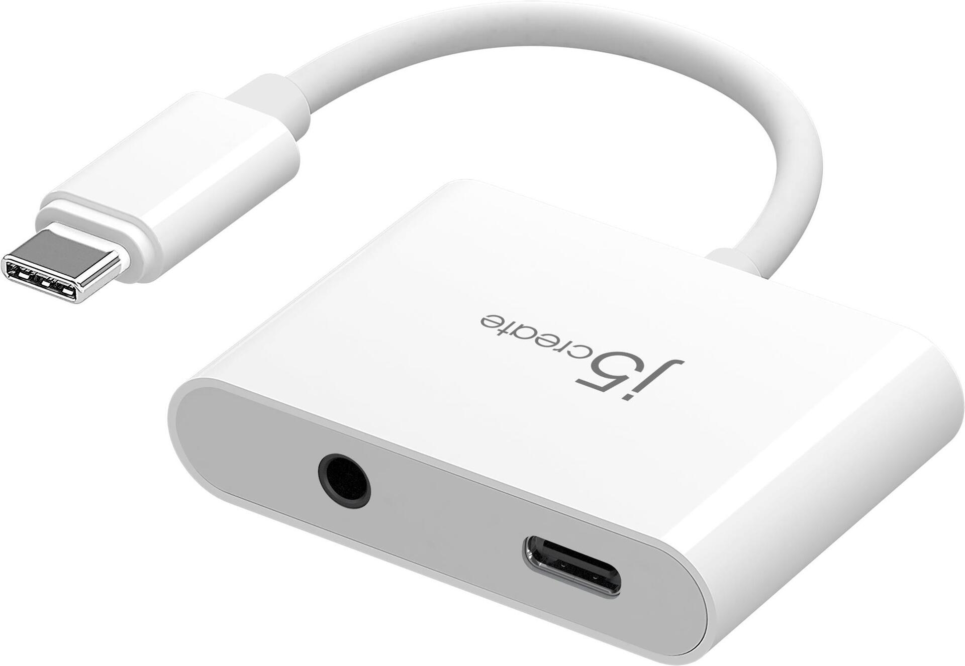 j5create JCA122 - USB-C zu Kopfhöreranschluss / Ladeadapter - 24 pin USB-C männlich zu 24 pin USB-C, 3,5-mm-Klinkenstecker weiblich - 8.2 cm - weiß - USB-Stromversorgung (100 W) (JCA122-N)
