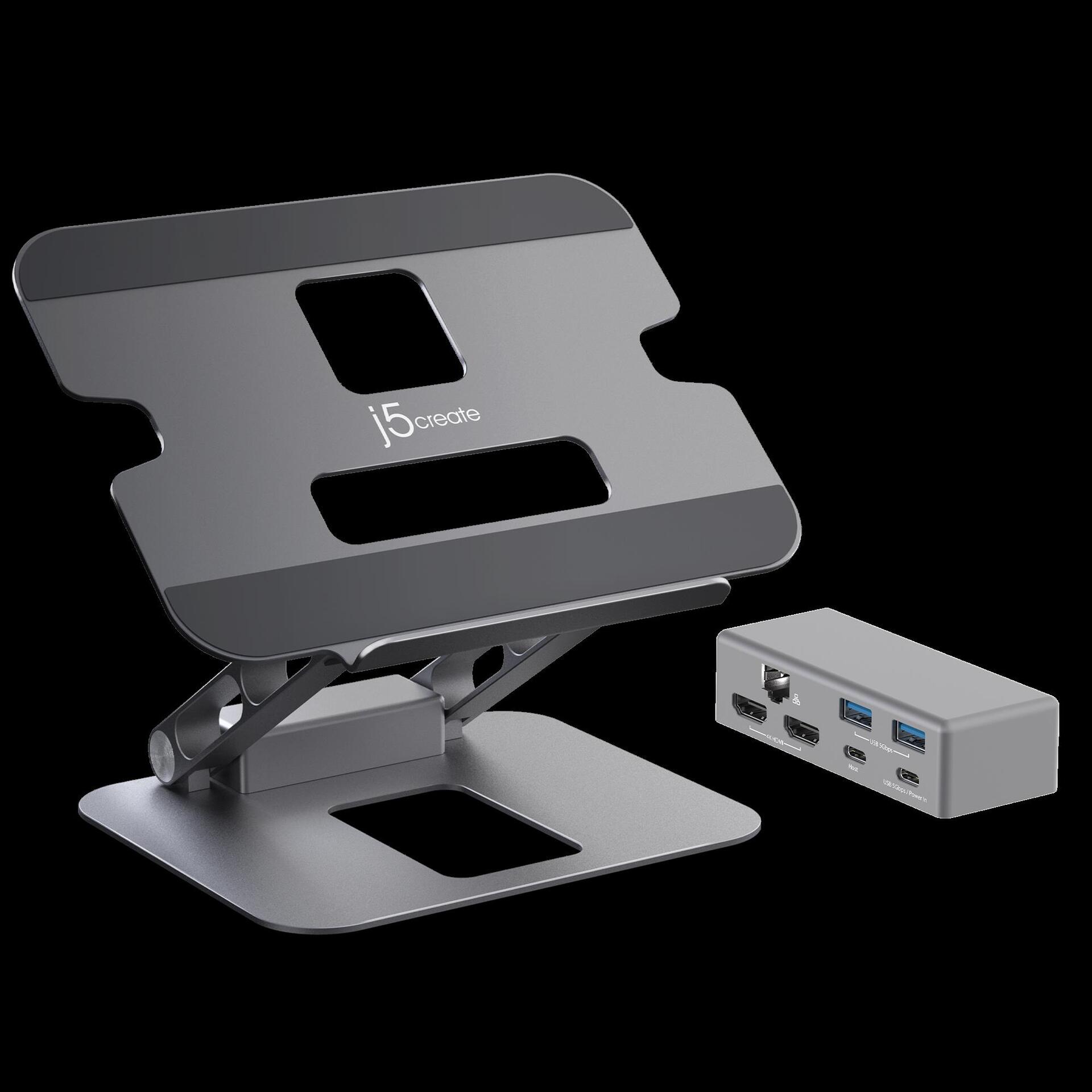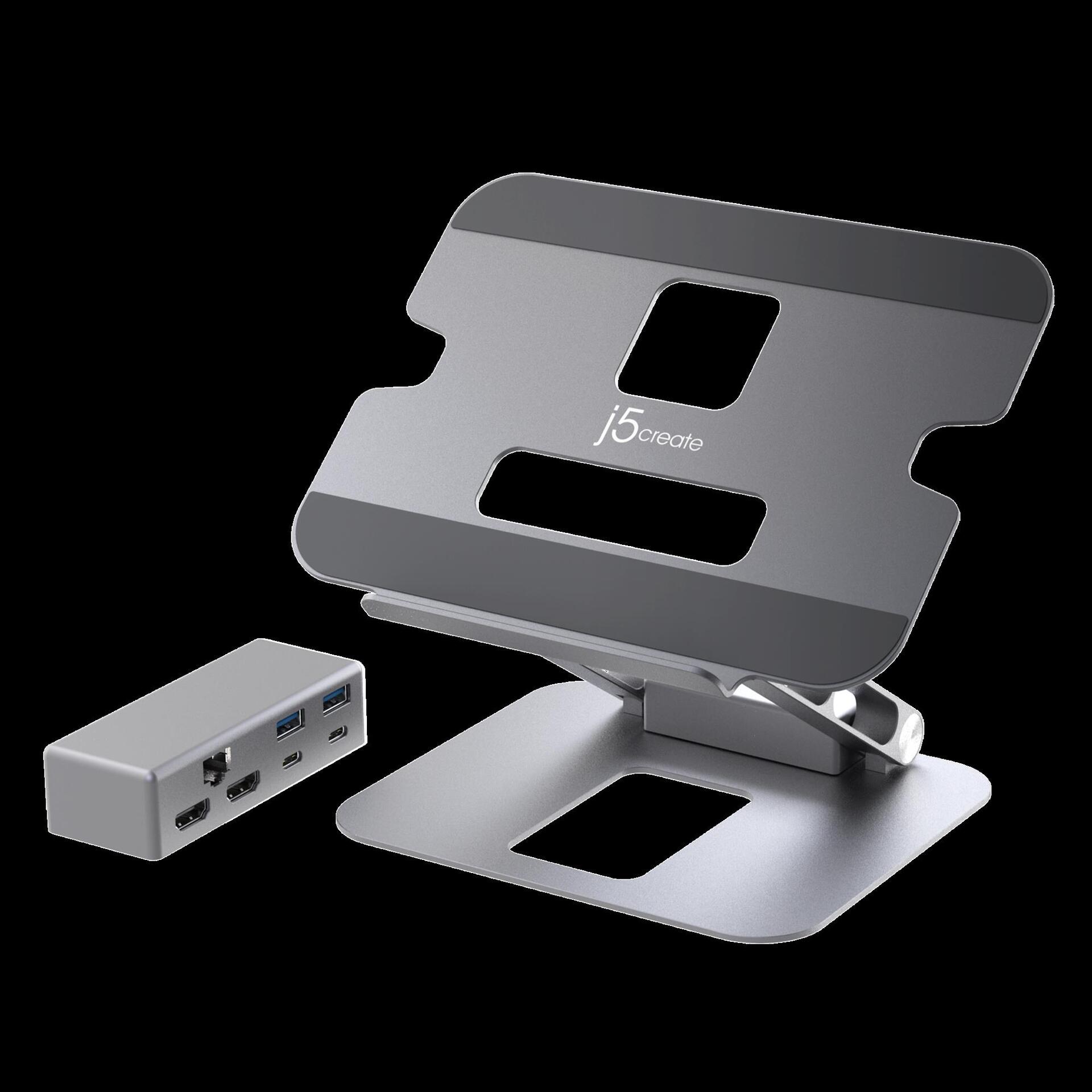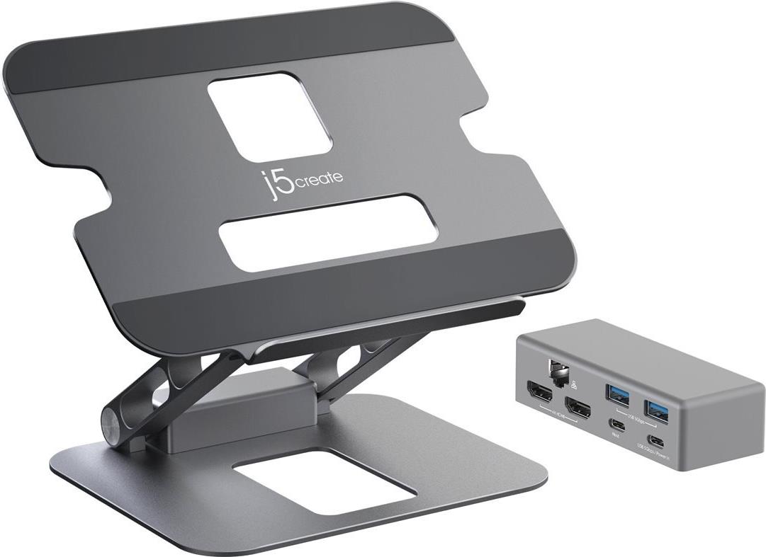 j5create JTS427-N Multi-Winkel Dual 4K Dockingstation - Notebook- & Tablet-Ständer - Grau - Aluminium - 40,6 cm (16" ) - Windows laptop / Mac - USB 3.2 Gen 1 (3.1 Gen 1) Type-C (JTS427-N)
