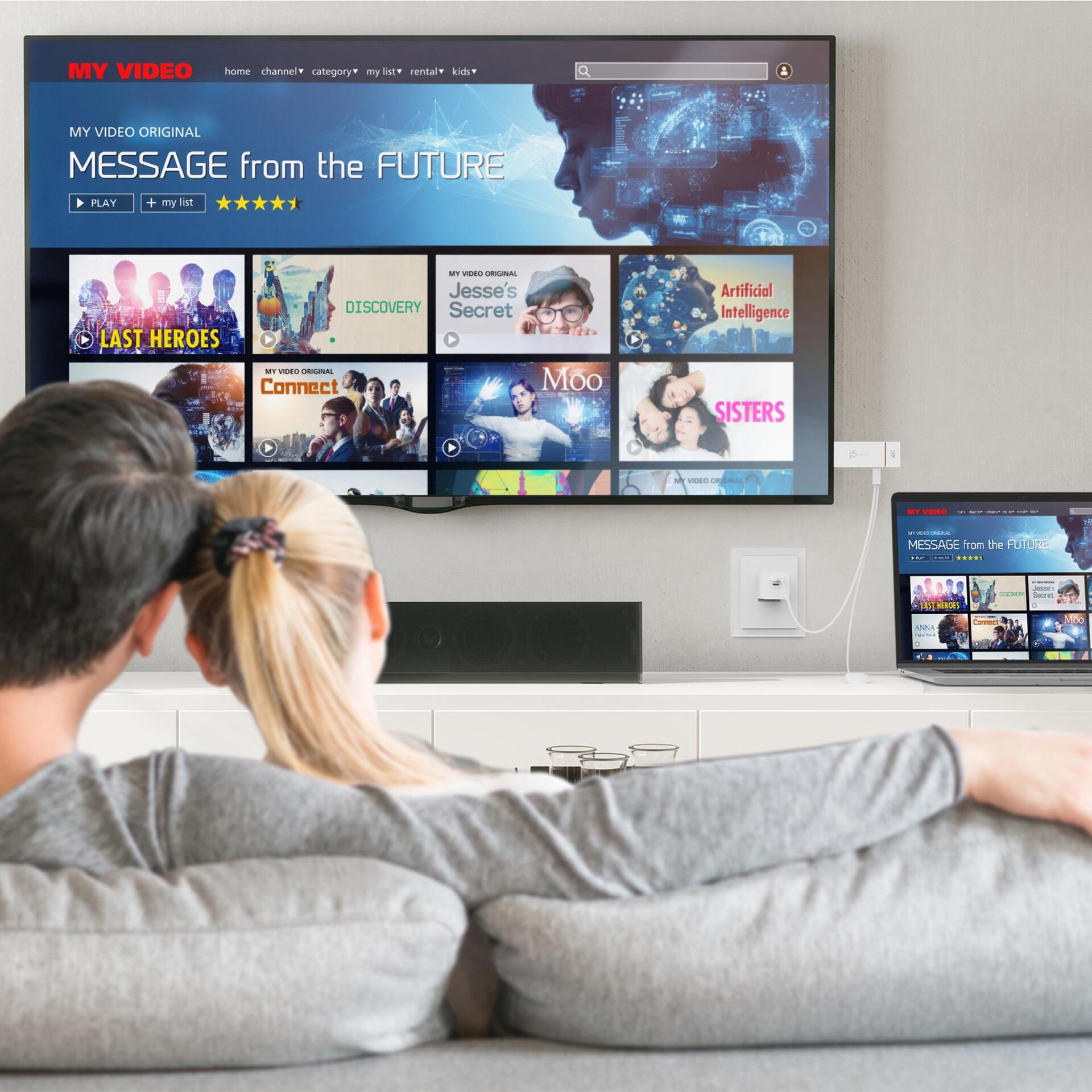 Perfekt für Zuhause, Reisen, Büro und mehr. Der ScreenCast funktioniert mit einer Vielzahl von Apps. Einfach verbinden und teilen!