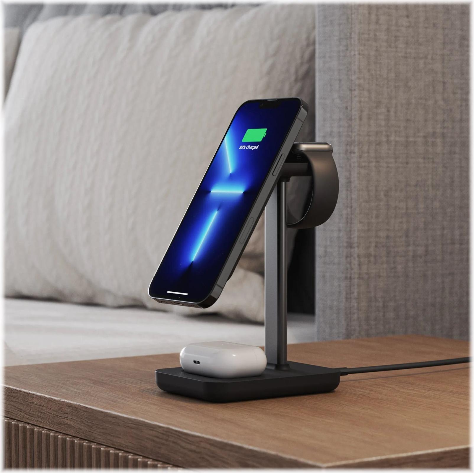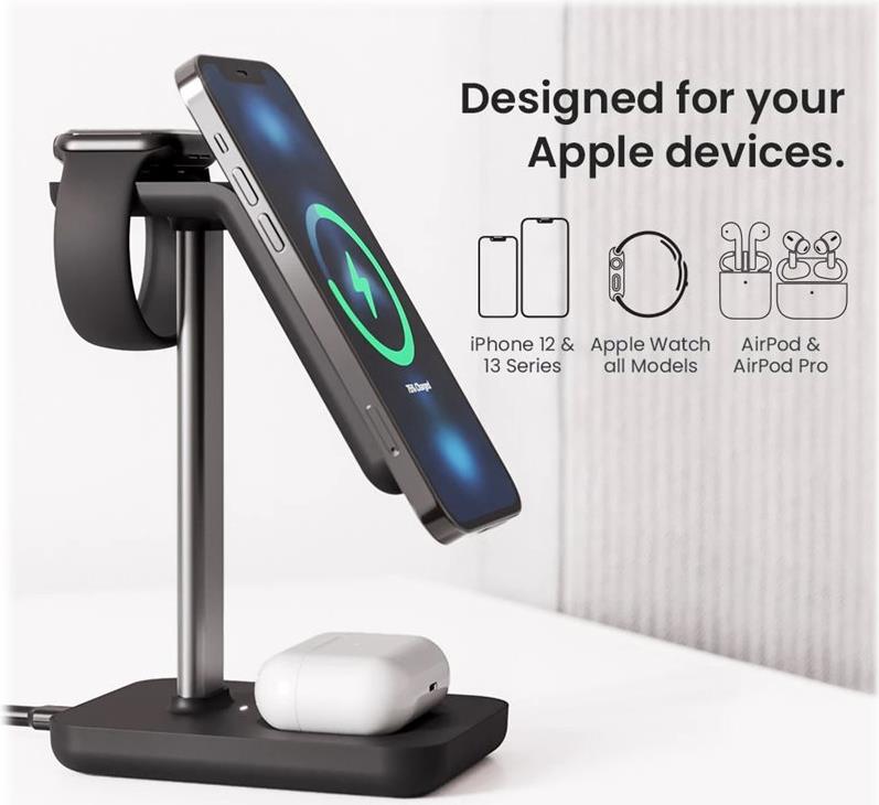 Die kabellose 3-in-1-Ladestation ALOGIC Journey ist eine vielseitige und effiziente Ladelösung, die auf die Bedürfnisse moderner mobiler Nutzer zugeschnitten ist. Mit MagSafe-Kompatibilität bietet sie eine sichere und zuverlässige Verbindung zum Aufladen Ihres Mobiltelefons, Ihrer Smartwatch und Ihrer kabellosen Kopfhörer. Diese Ladestation unterstützt nicht nur das gleichzeitige Aufladen von bis zu 3 Geräten, sondern bietet auch eine 360°-Drehung für einfachen Zugang und eine LED-Anzeige zur Überwachung des Ladestatus. Ausgestattet mit fortschrittlichen Sicherheitsfunktionen wie FOD (Foreign Object Detection), Übertemperaturschutz und vielem mehr, gewährleistet sie ein sicheres Ladeerlebnis für Ihre Geräte. Ob zu Hause oder im Büro, die ALOGIC Journey Ladestation ist die perfekte Mischung aus Funktionalität und Komfort und damit ein unverzichtbares Accessoire für alle Ihre Bedürfnisse beim kabellosen Laden.