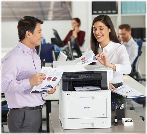 Das MFC-L8900CDW eignet sich ideal für Arbeitsgruppen mit hohen Druckvolumen. Neben dem integrierten NFC-Kartenleser zur sicheren Authentifizierung bietet das 4-in-1-Farblaser-Multifunktionsgerät zahlreiche weitere Sicherheitsfunktionen zum Schutz vertraulicher Dokumente.