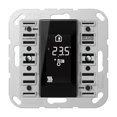 • JUNG A 5194 KRM TS D. Übertragungstechnik: Verkabelt. Produktfarbe: Schwarz, Grau, Display-Typ: LCD, Steuerung: Knöpfe. Eingangsspannung: 21 (A5194KRMTSD)
