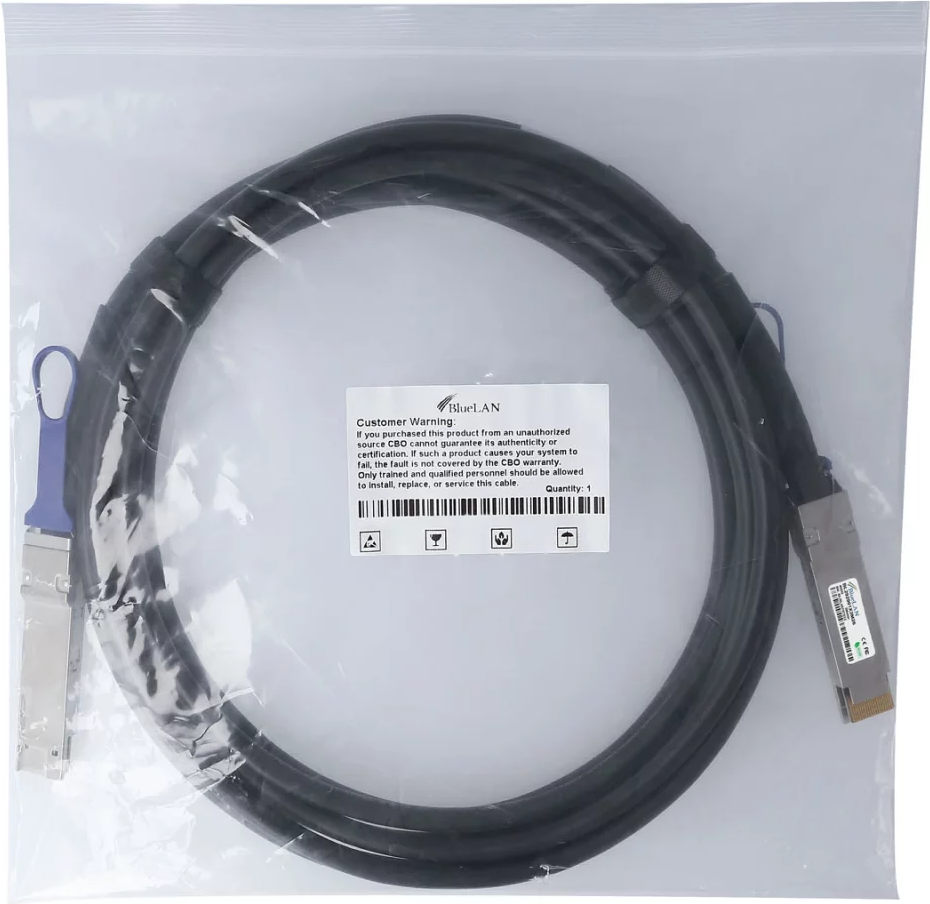 Juniper 720-087756 kompatibles Direct Attach Kabel (DAC) als passive 400 Gigabit Twinaxial Kupfer Variante, mit QSFP-DD auf QSFP-DD Verbindung, für den Anschluss von Hardware in Racks und über benachbarte Racks hinweg. BlueLAN Juniper 720-087756 kompatibl (720-087756-BL)