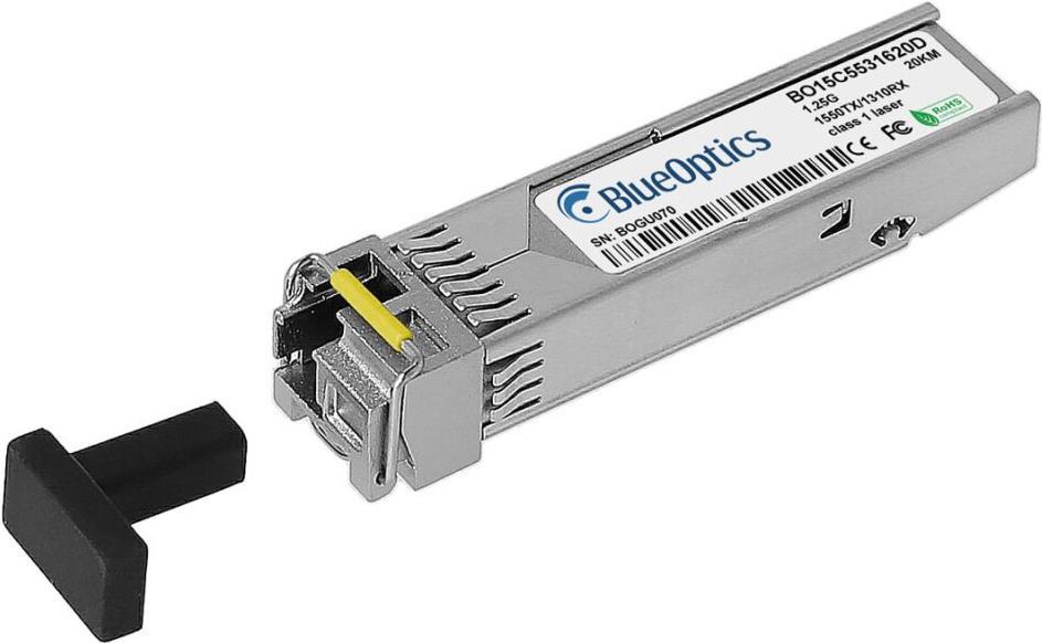 Juniper 740-094030 kompatibler BlueOptics© SFP Bidi Transceiver für Singlemode Gigabit Highspeed Datenübertragungen in Glasfaser Netzwerken. Unterstützt Gigabit Ethernet, Fibre Channel oder SONET/SDH Anwendungen in Switchen, Routern, Storage Systemen und (740-094030-BO)