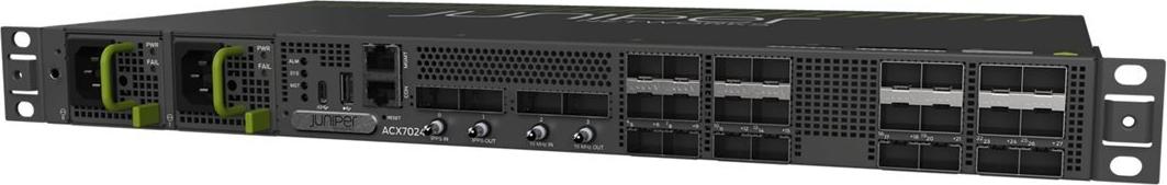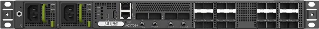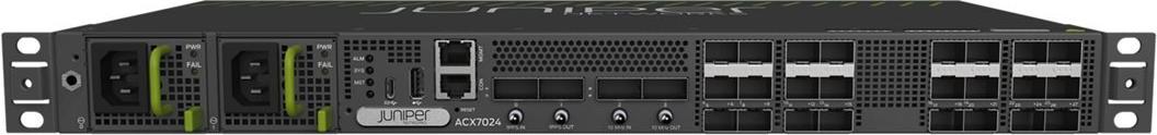 Der ACX7024 aus der ACX7000-Familie von Juniper ist eine robuste Plattform, die einen Durchsatz von 360 Gbit/s in einem industrietauglichen Format von 1U (24 cm Tiefe) bietet. Er ist mit 24 Multi-Rate-Ports mit 1/10/25 GbE und vier 100 GbE-Ports ausgestattet, um die Skalierbarkeit von Metro-Cloud-Diensten zu gewährleisten.