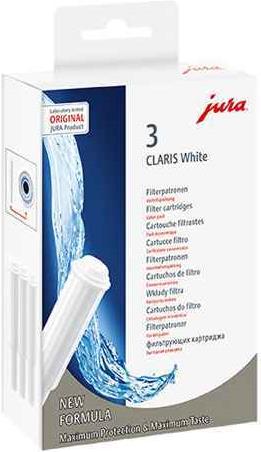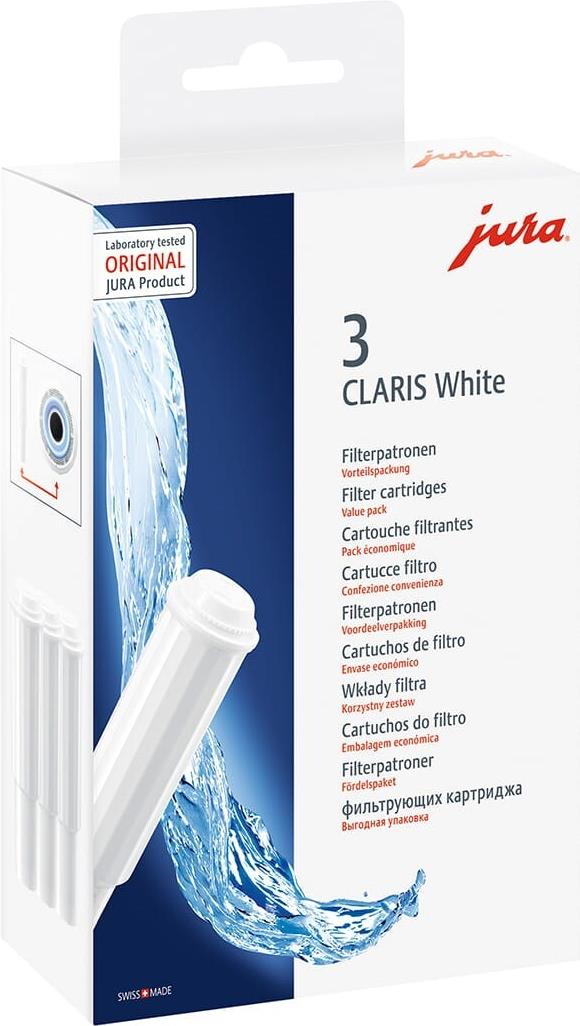 Wer einmal frisches Quellwasser getrunken hat, weiß: Zwischen dem naturreinen Lebenselixier und dem aufbereiteten Nass aus der Leitung können Welten liegen. Mit dem Einsatz der Filterpatrone CLARIS gewinnen Sie stets frisch gefiltertes, wohltuendes Kaffee- und Teewasser.Produkttext[/head]Wer einmal frisches Quellwasser getrunken hat, weiß: Zwischen dem naturreinen Lebenselixier und dem aufbereiteten Nass aus der Leitung können Welten liegen. Mit dem Einsatz der Filterpatrone CLARIS gewinnen Sie stets frisch gefiltertes, wohltuendes Kaffee- und Teewasser.Sie wurde speziell für Kaffeespezialitäten-Vollautomaten von JURA entwickelt, ist kaffeeneutral und wird direkt im Wassertank platziert.Das neue 3er-Set bieten wir Ihnen zum attraktiven Vorzugspreis an. Wir wünschen Ihnen vollendeten Kaffeegenuss in einer neuen Dimension.Die CLARIS White Filterpatrone kann bei allen JURA Vollautomaten verwendet werden, bei denen im Wassertank die Filterhalterung Schwarz ist.[head]Hauptmerkmale