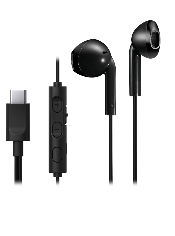 Diese USB-C-Kopfhörer verfügen über eine intuitive Touch-Design-Fernbedienung mit leicht zu drückenden Tasten und einem Mikrofon-Ein/Aus-Schalter.