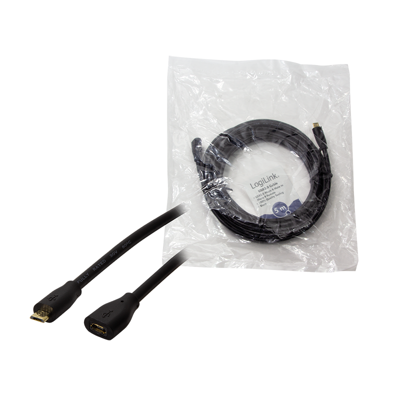 Logilink - USB-Verlängerungskabel - Micro-USB Typ B (M) bis Micro-USB Typ B (W) - USB 2.0 - 5 m - Schwarz (CU0125)