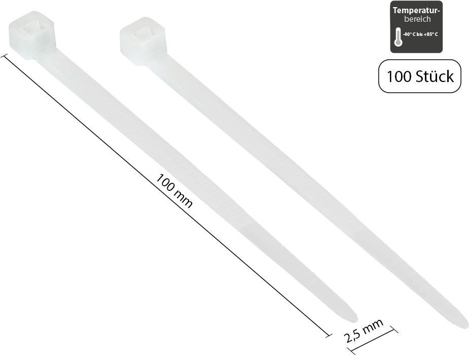 Kabelbinder 100 mm x 2,5 mm, transparent, UL, -40 °C bis +85 °C, 100 Stück, Good Connections (KAB-10T25)