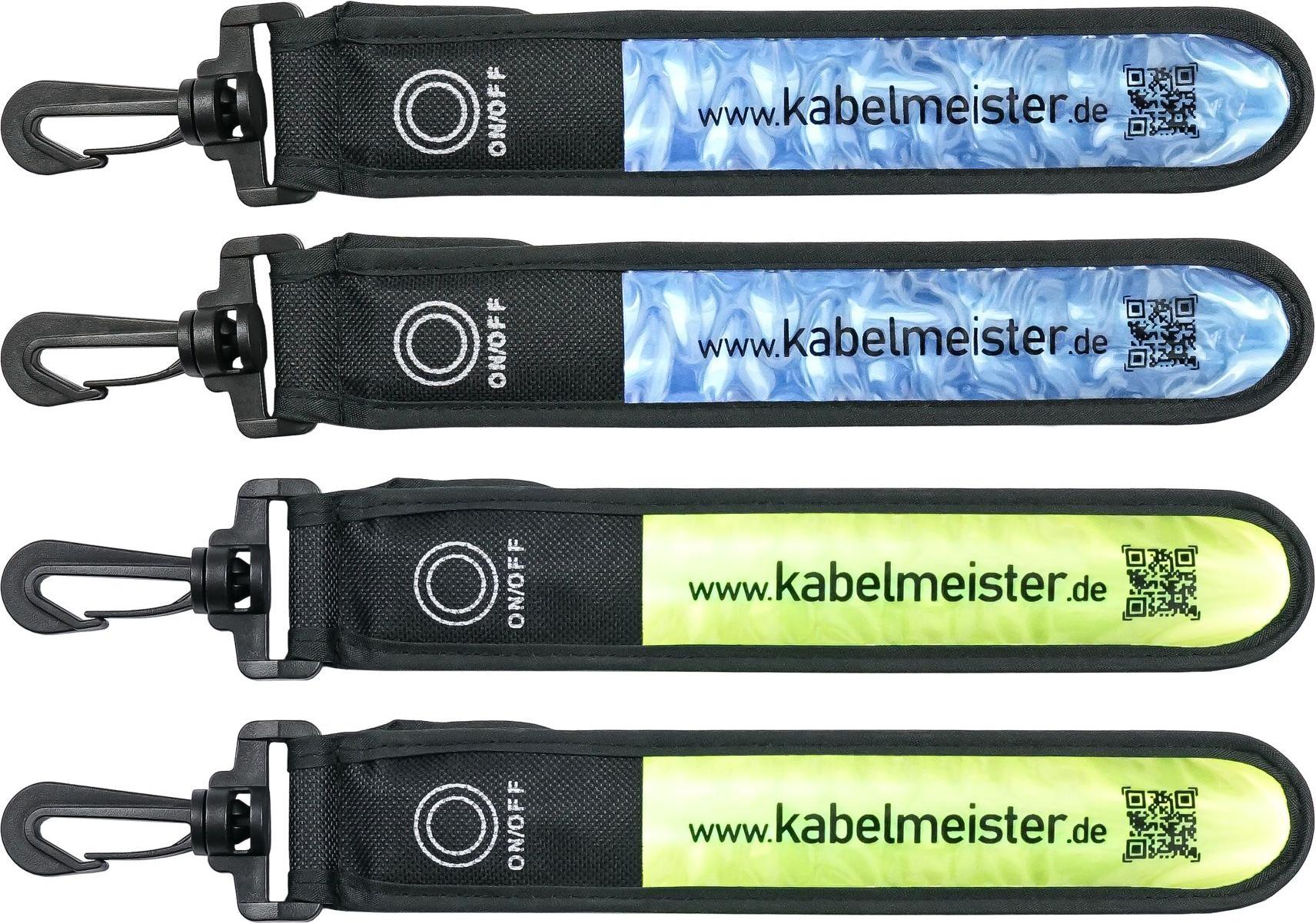 kabelmeister@ LED Leuchtband mit Befestigungshaken 4er-Set, blau und grün/gelb (GA-K001-4)