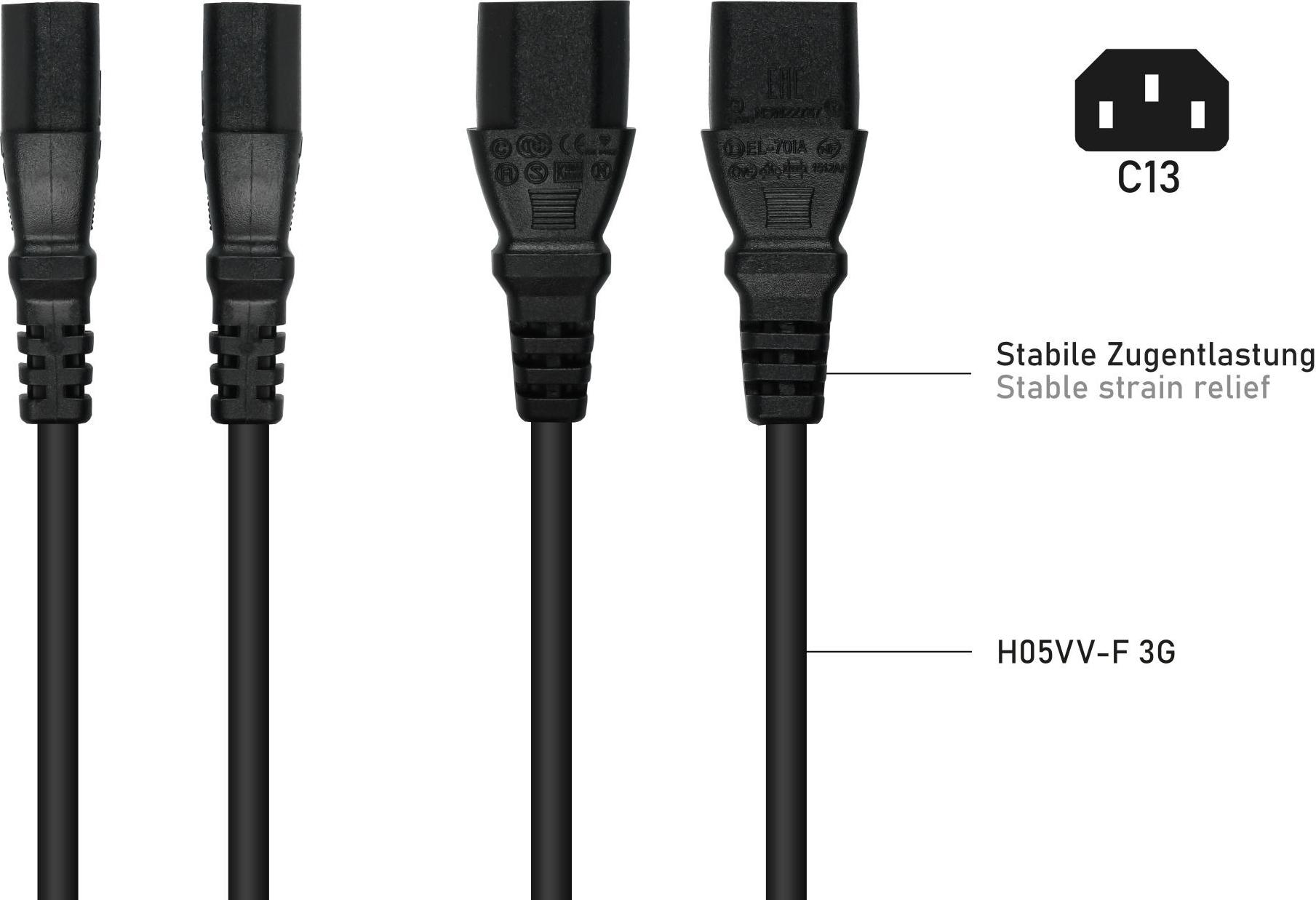 kabelmeister Netzkabel Schutzkontakt-Stecker Typ E+F (CEE 7/7, gewinkelt) an Kaltgeräte-Buchse C13 (gerade), schwarz, 1,00mm ², 5m (SK0130-S050)