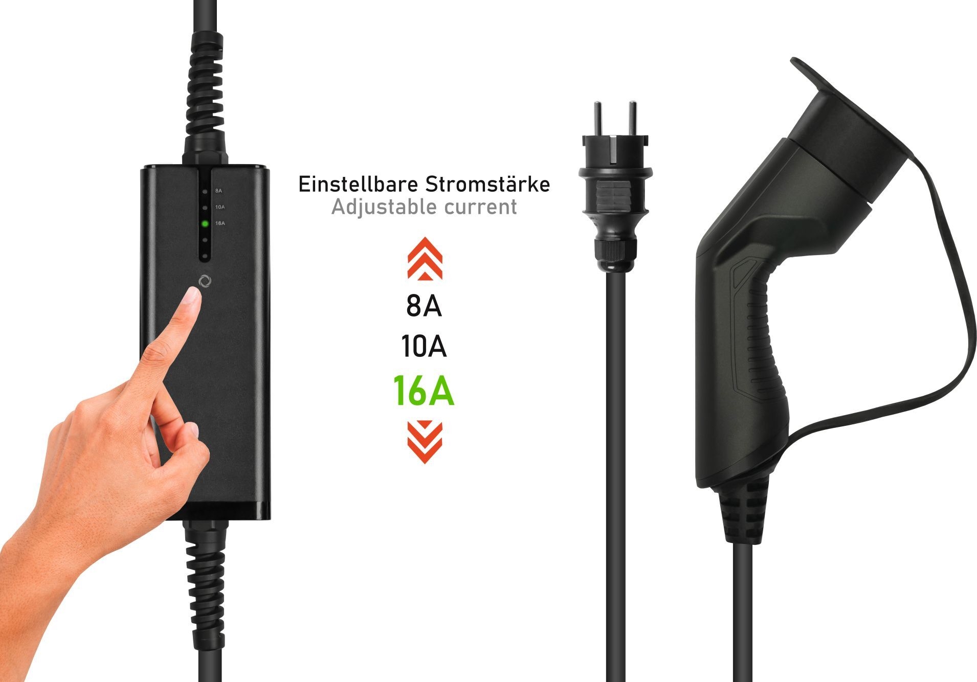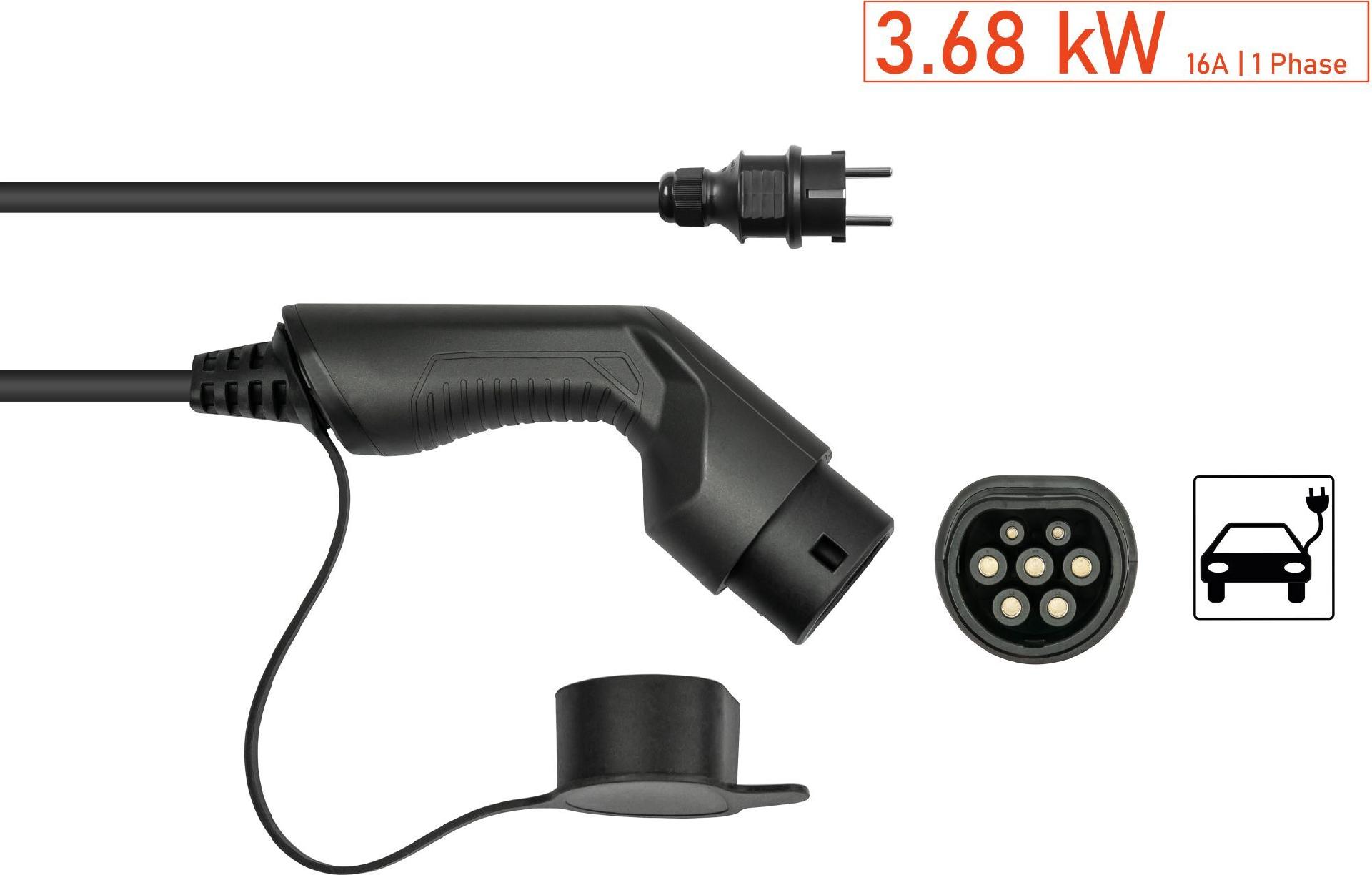 • kabelmeister Typ 2 Ladegerät mit geradem Schutzkontakt-Stecker, für Elektro- u. Hybridfahrzeuge, 3,6kW, schwarz, 5m (EVPC-01)