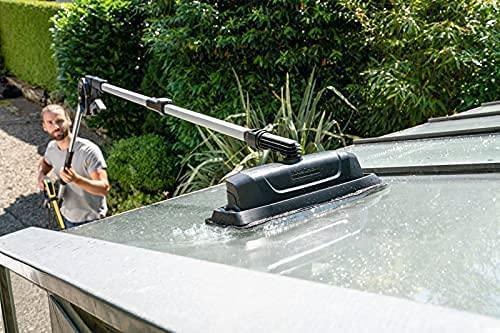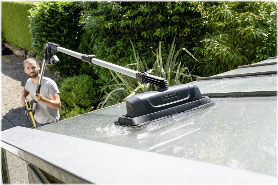 Gleichmäßige und hocheffektive Reinigung: Die 4 verbauten Hochdruckdüsen beseitigen hartnäckige Verschmutzungen auf diversen Oberflächen. Je nach Anwendung können die mitgelieferten Wechselrahmen einfach und schnell ausgetauscht werden. Der beborstete Rahmen für die Reinigung von Fassaden und Wänden schützt den Anwender vor Spritzwasser und lässt sich zudem sanft auf der Oberfläche entlang schieben. Für die Reinigung von Glasflächen, wie beispielsweise bei Wintergärten, eignet sich der Rahmen mit Mikrofaserpad, der mittels Klett angebracht ist. Die abrasiven Fasern unterstützen die Schmutzbeseitigung und garantieren eine schonende Reinigung der Oberflächen.