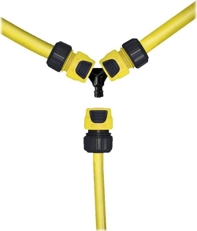 Intakte Hahnanschlüsse, Schlauchkupplungen und Schläuche sind das Fundament einer effektiven Bewässerung. Deshalb bietet Kärcher eine komplette Reihe von Zubehör zum Verbinden, Entkoppeln und Reparieren von Bewässerungssystemen. Zum Beispiel die 3-Wege-Kupplung zur passgenauen Verbindung von 3 Schläuchen. Die 3-Wege-Kupplung ist universell einsetzbar für alle gängigen Gartenschläuche und besticht durch robuste Qualität und ergonomisches Design für eine leichte Handhabung. Die 3-Wege-Kupplung ist kompatibel mit den drei gängigsten Schlauchdurchmessern und allen erhältlichen Klicksystemen.