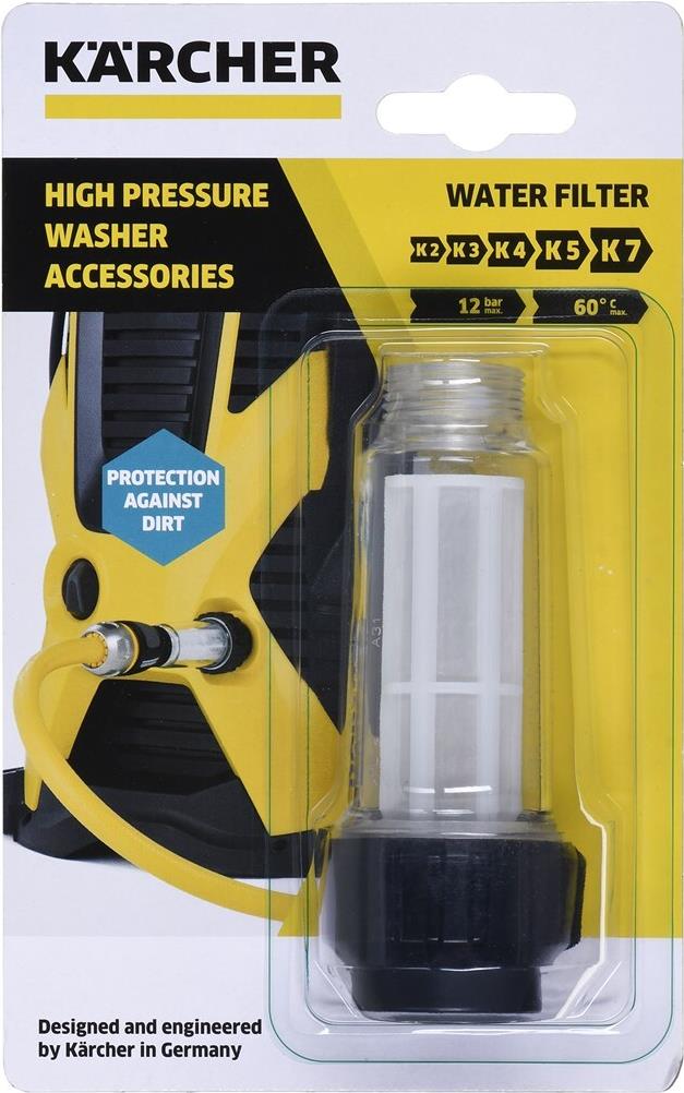 Wasserfilter zum Schutz der Hochdruckreiniger-Pumpe vor Schmutzteilchen aus verunreinigtem Wasser. Das Filtern der Schmutzpartikel führt zu einer Erhöhung der Lebensdauer des Hochdruckreinigers. Geeignet für alle Kärcher Hochdruckreiniger der Klassen K 2 bis K 7.