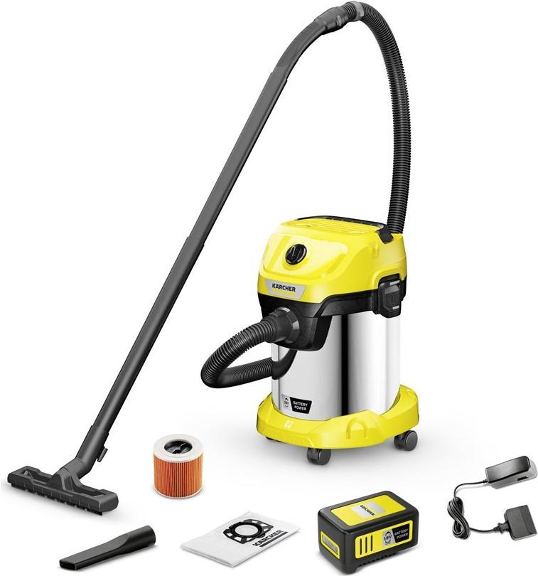 Mehr Bewegungsfreiheit, mehr Flexibilität: Der akkubetriebene Nass-/Trockensauger WD 3-18 S Battery Set läuft auf der 18 V Kärcher Battery Power Akku-Plattform und ist schnell einsatzbereit. Das Gerät, der 2 Meter lange ...