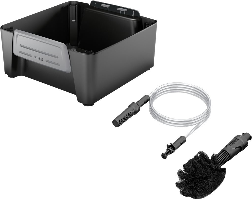 Perfekt, wenn man viel unterwegs ist: die Zubehörbox Adventure mit optimal abgestimmten Zubehören, um Outdoor-Equipment überall zu reinigen. Die an der Pistole anschließbare Universalbürste löst hartnäckigen Schmutz mit weichen Bürsten und schwemmt ihn weg. Mit dem Ansaugschlauch können auch alternative Wasserquellen wie Brunnen oder Wasserkanister genutzt werden. Zu guter Letzt lässt sich das Zubehör in der praktischen und am Druckreiniger anbringbaren Box aufbewahren.