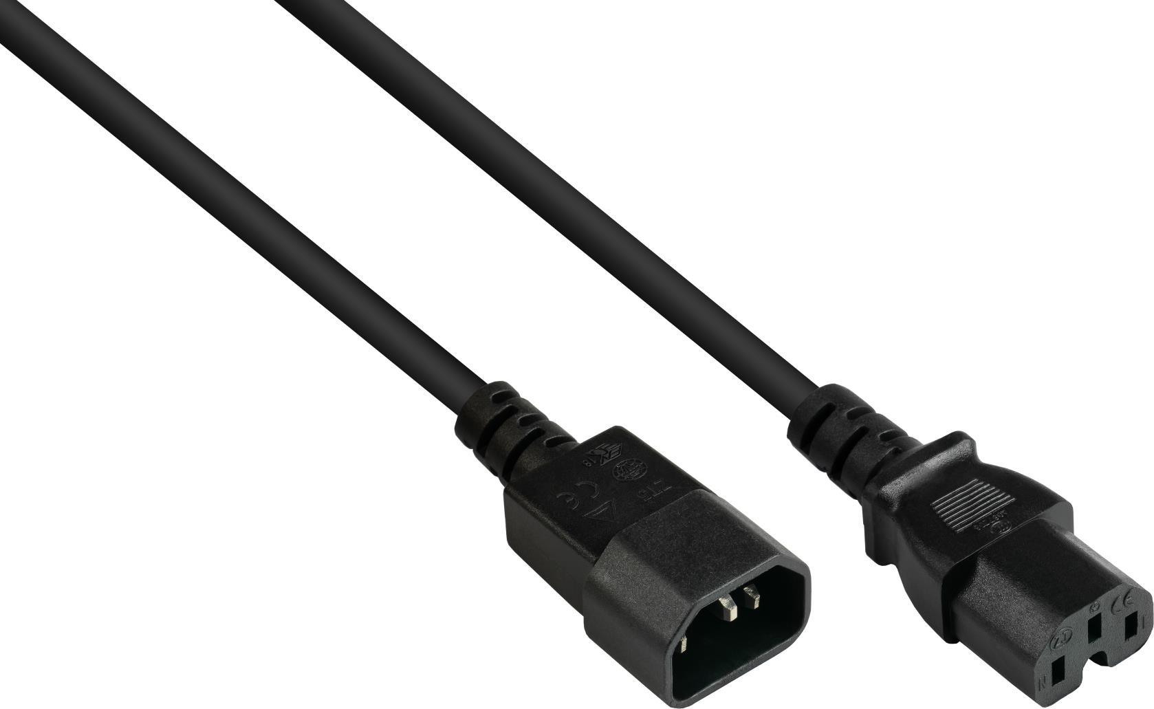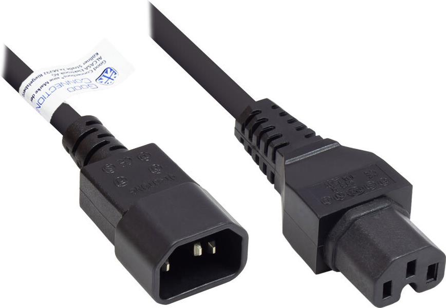 Kaltgeräte-Warmgeräte-Verbindungskabel C14 (gerade) an C15 (gerade), schwarz, 0,75 mm², 1 m, Good Connections®
