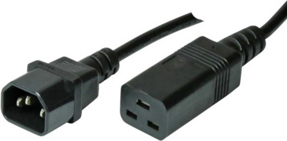 Kaltgeräteverlängerung C14-C19 10A/16A schw. 1,8m Kaltgeräteverlängerung C14-C19, 10 A/ 16 A, schwarz, 3x0,75mm², 1,8 m · Anschlüsse: Kaltgeräte-Stecker - Kaltgerätebuchse · Haube: vergossen, C14-C19, 10 A/ 16 A · Aufbau Kabekl: 3 x 0,75 mm² · Adern Material: Kupfer · Stecker Material: FeNi · Kontaktoberfläche: vernickelt · Farbe Stecker: Schwarz · Farbe Kabel: Schwarz (60017)