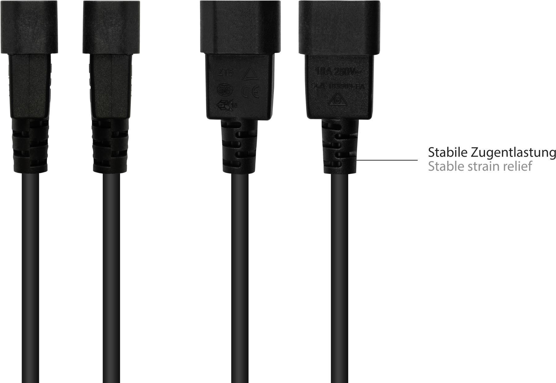 Kaltgeräteverlängerung C14 (gerade) an C13 (gerade), schwarz, 0,75 mm², 0,75 m, Good Connections®