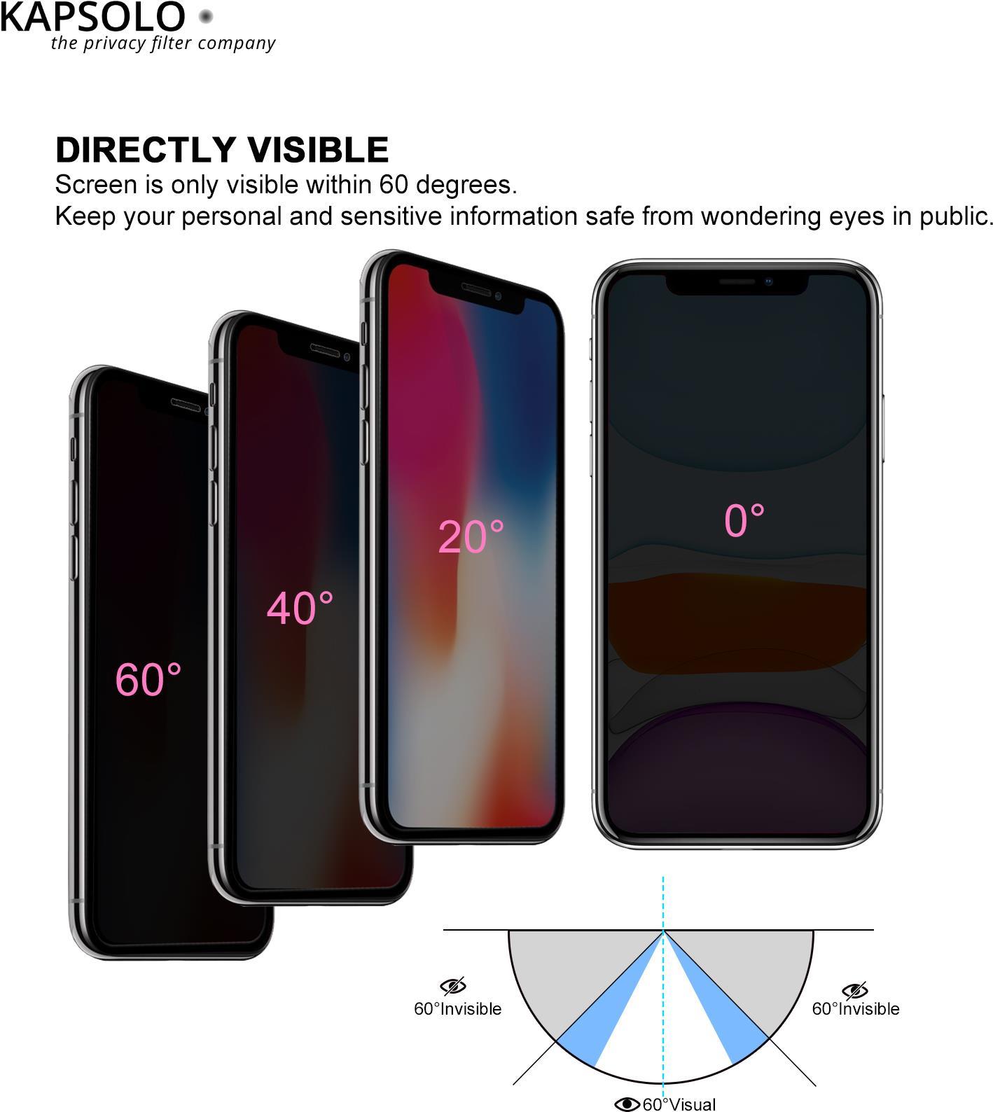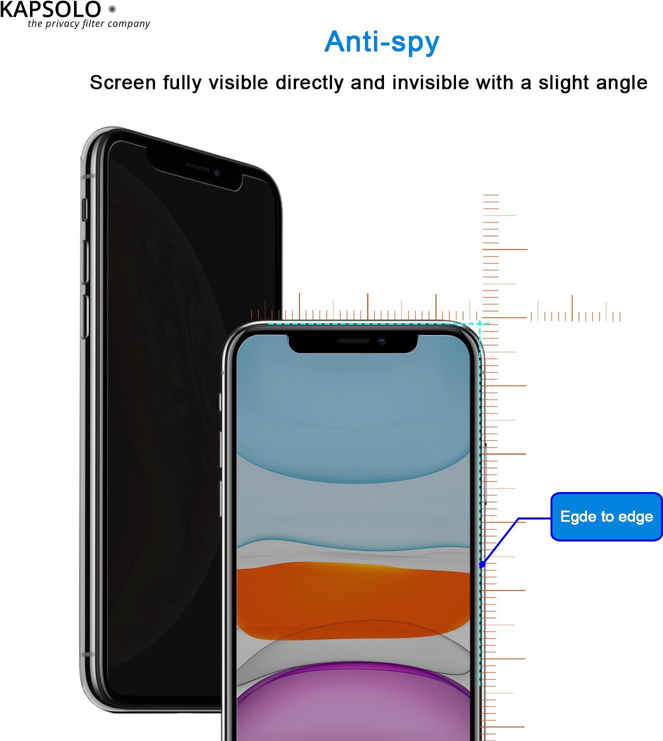 KAPSOLO Blickschutzfilter Displayglas - vollflächiges gehärtetes Privacy Schutzglas / Temperglas mit abgerundete Kanten - schützen sie ihre sensiblen und privaten Daten vor unerwünschten Blicken für Apple iPhone XR (KAP30297)