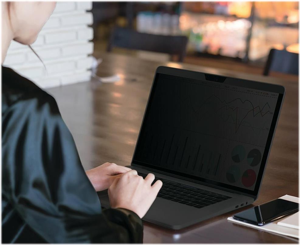 Datenschutz beginnt am Bildschirm. Ein Blickschutzfilter verhindert unerlaubte Einblicke.