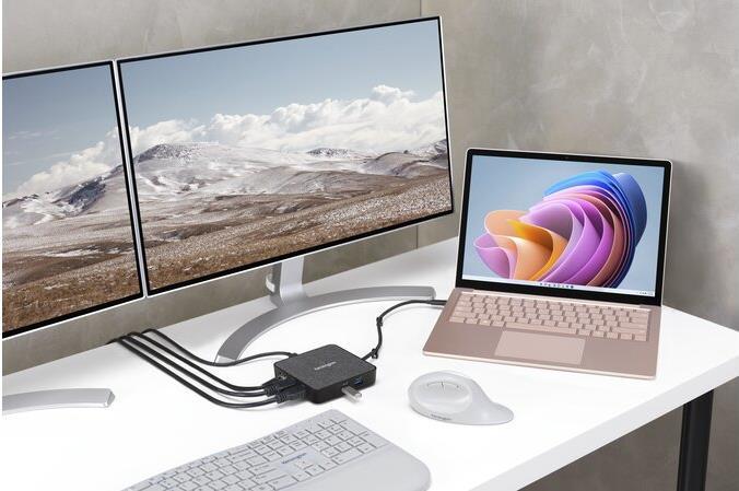 Kensington präsentiert exklusiv für Surface die leistungsstarke MD125U4 Mobile USB4 Dockingstation - eine innovative mobile Dockingstation, die die ganze Power von USB4 bietet, um Dual 4K-Unterstützung, bis zu 40 Gbit/s Upstream-Geschwindigkeit und bis zu 100W Power Pass-Through zu ermöglichen. Dank Power-Passthrough müssen Sie kein zusätzliches Netzteil mit sich führen, da die Dockingstation über das USB-C-Netzteil des Surface mit Strom versorgt wird, während Ihr Gerät geladen wird. Lässt sich mit USB-C-basierten Surface-Geräten koppeln und ist mit Thunderbolt 3-, Thunderbolt 4- und USB-C 3.2-Geräten mit Windows 10 oder höher kompatibel. 2 x HDMI 2.1-Anschlüsse liefern bis zu 8K @ 30 Hz für einen Monitor und bis zu 4K @ 120 Hz für zwei Monitore. Enthält 2 x HDMI-Anschlüsse, 1 x USB-C-Anschluss, 2 x USB-A-Anschlüsse und 1 x 2,5 Gbit/s Ethernet-Anschluss Mit Kabelaufbewahrungsclips verstauen Sie einfach das 25 cm lange USB4-Kabel ordentlich für den Transport oder bei Nichtgebrauch. Inklusive einer dreijährigen Garantie von Kensington.