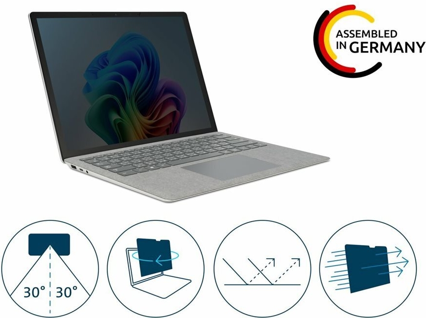 Datenschutz beginnt am Bildschirm. Ein Blickschutzfilter verhindert unerlaubte Einblicke.