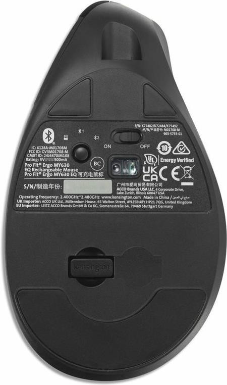 Kensington Pro Fit Ergo MY630 EQ - Maus - wiederaufladbar - 2.4 GHz, Bluetooth |
