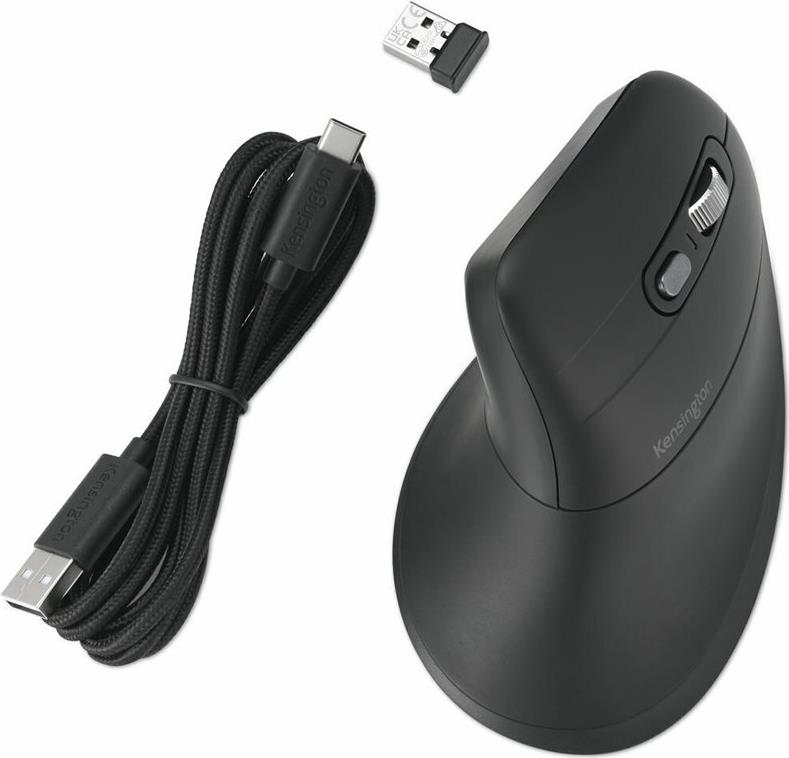 Kensington Pro Fit Ergo MY630 EQ - Maus - wiederaufladbar - ergonomisch - 5 Tasten - kabellos - 2,4 GHz, Bluetooth - kabelloser Empfänger (USB) - Einzelhandelsverpackung (K72482WW)