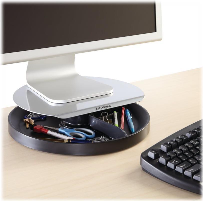 Maximieren Sie die Nutzfläche Ihres Schreibtischs mit diesem innovativen Monitorstand. Höhenverstellbar auf Ihre persönliche SmartFit -Farbeinstellung. Patentiert: Karussell-Ablagebereich für Schreibtischutensilien. Für Flachbildschirme (LCD) bis ca. 18 kg.