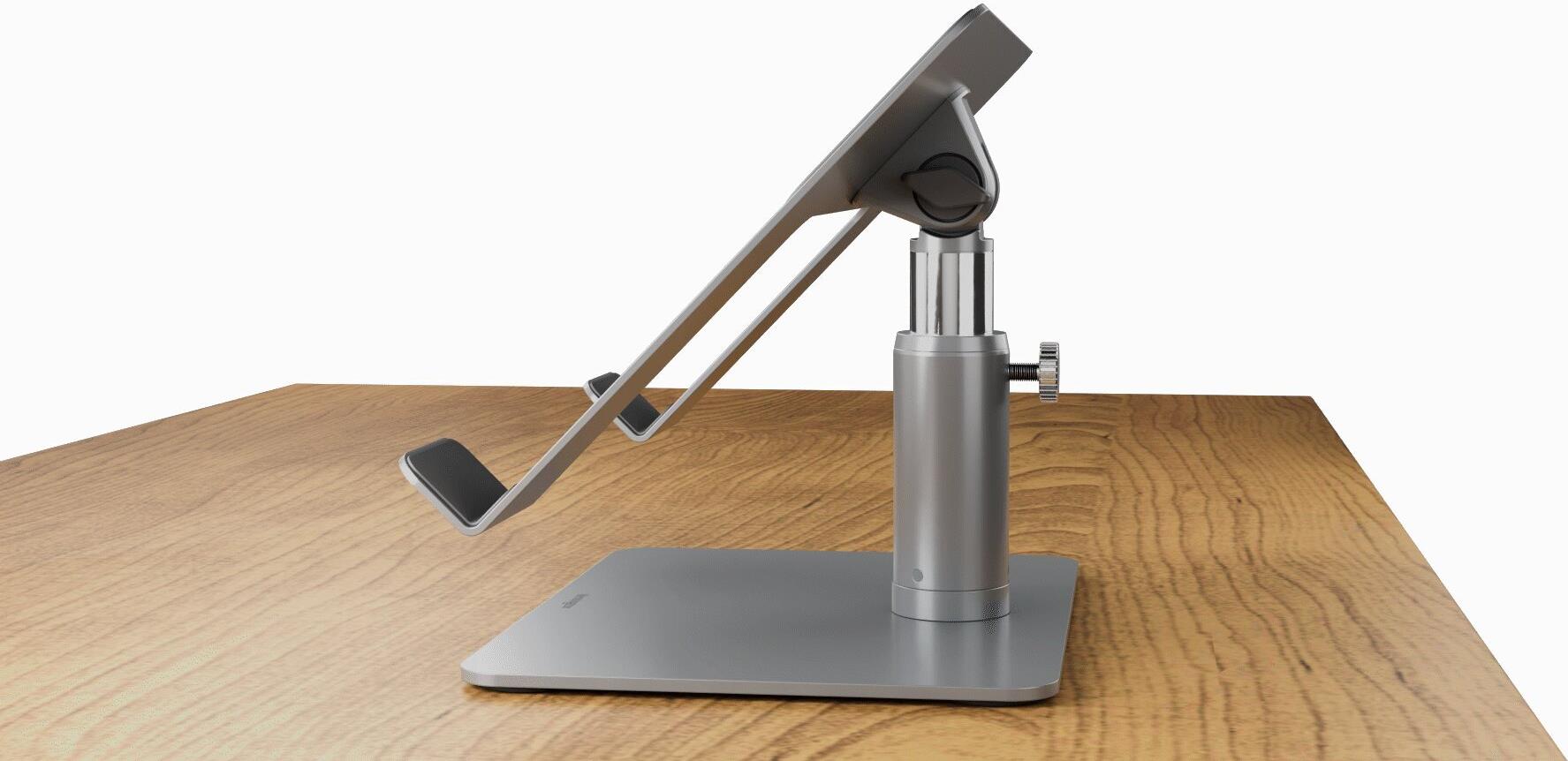 Der Universelle Laptopständer ermöglicht es Ihnen, Ihren Laptop auf eine bequeme Betrachtungshöhe aufzustellen und gleichzeitig die Unordnung auf dem Schreibtisch zu verringern. Diese stabile Laptophalterung für den Tisch aus robustem Stahl und Aluminium eignet sich für Laptops aller Größen bis maximal 16" und maximal 8 kg. Das stufenlose Design erfordert kein Werkzeug, um die Höhe zwischen 151 und 200 mm einzustellen oder den Winkel von 0° bis 45° zu neigen. Die offene Belüftung verbessert die Luftzirkulation und die Kühlung des Laptops, während Sie darunter reichlich Stauraum für Zubehör vorfinden. Rutschfeste Silikonpads verhindern Kratzer auf dem Laptop und helfen, das Gerät an seinem Platz zu halten.