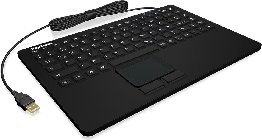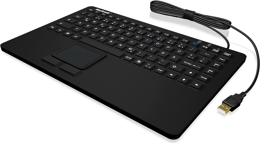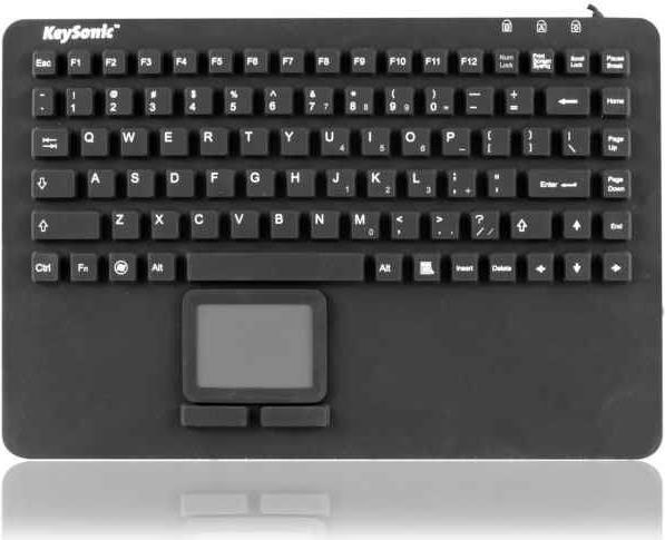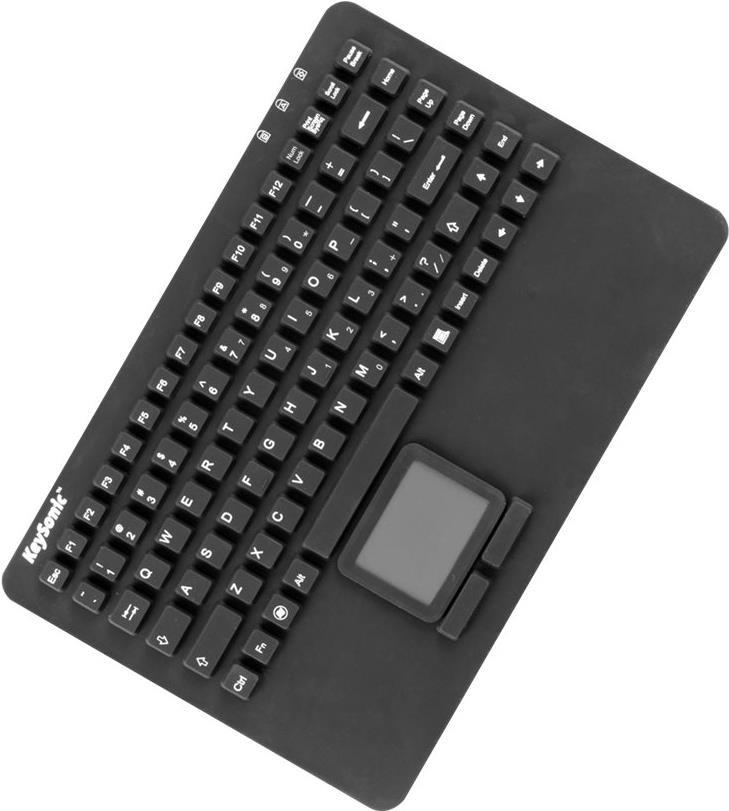 Diese Keysonic Tastatur verfügt über ein ausgezeichnetes, taktiles Schreibgefühl und ist wasserdicht nach IP68 und kann somit sogar in Flüssigkeiten eingetaucht werden.Die Oberfläche der Keysonic Tastatur ist mit einer speziellen Oberflächenversiegelung ausgestattet und weist daher eine gute mechanische und chemische Beständigkeit auf, so dass mit Standard Desinfektionsmitteln gearbeitet werden kann, ohne dass die Tasten ihre Beschriftung verlieren.Das integrierte Touchpad ermöglicht den Einsatz der Keysonic Tastatur ohne externe, zusätzliche Maus. Dies ist sowohl ein Kosten- als auch ein praktischer Vorteil, denn das Touchpad lässt sich sowohl mit als auch ohne Gummihandschuhe einwandfrei bedienen.