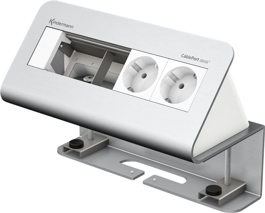 Kindermann CablePort desk² 4-fold - Steckdosengehäuse - Oberfläche montierbar - Spannungsversorgung X 2 - eloxiertes Aluminium