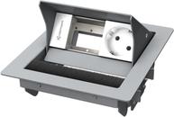Tischeinbaugehäuse, Leermodul mit 1 x Strom (Schuko), pulverbeschichtet RAL 9006, individuell bestückbar mit Konnect flex 45 click Blenden (7464000xxx).