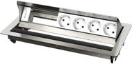 Tischeinbaugehäuse, Leermodul mit 4 x Strom (Schuko), Edelstahl gebürstet, individuell bestückbar mit Konnect flex 45 click Blenden (7464000xxx).