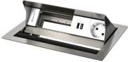 Tischeinbaugehäuse Edelstahl gebürstet, Leergehäuse mit 1 x Strom (Schuko), 1x USB Ladeadapter mit 2 USB Anschlüssen und integriertem Netzteil (5V/1500 mA), individuell bestückbar mit Konnect flex 45 click Blenden (7464000xxx).