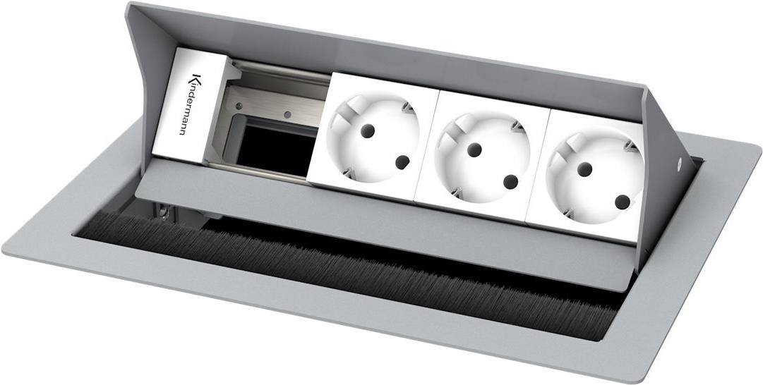 Tischeinbaugehäuse, Leermodul mit 3 x Strom (Schuko), RAL 9006 pulverbeschichtet, individuell bestückbar mit Konnect flex 45 click Blenden (7464000xxx).