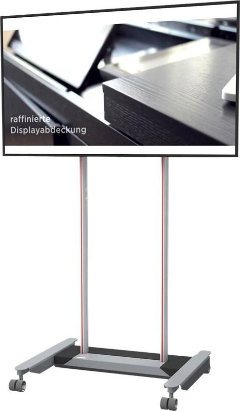 Rollbarer Ständer mit hochwertigem, zeitlosem Design für Flachbildschirme bis max. 70 kg Gewicht und max. 80 Zoll Bildschirmdiagonale.Hauptmerkmale
