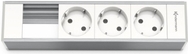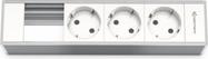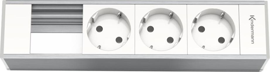 Aluminium natur, eloxiert, bestückt mit 3 x Strom (Schuko, 45° gedreht), bietet Platz für 2 Halbblenden oder 1 Vollblenden der Konnect flex 45 click Serie.