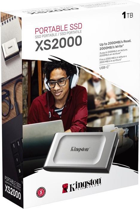 Kingston XS2000 - SSD - 1 TB - extern (tragbar) - USB 3.2 Gen 2x2 (USB-C Steckverbinder)