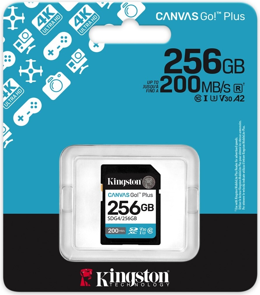Die Kingston Canvas Go! Plus SDXC UHS-I Speicherkarte wurde speziell für die Anforderungen von Fotografen und Videografen entwickelt, die schnell arbeiten müssen. Mit einer Speicherkapazität von 256 GB bietet sie ausreichend Platz für hochauflösende Bilder und Videos. Diese Speicherkarte bietet Lese- und Schreibgeschwindigkeiten von bis zu 200 MB/s bzw. 160 MB/s und eignet sich somit für die verzögerungsfreie Aufnahme von 4K-Videos. Der Schreibschutzschalter sorgt für zusätzliche Sicherheit und gewährleistet, dass die Daten während der Verwendung sicher und unverändert bleiben.