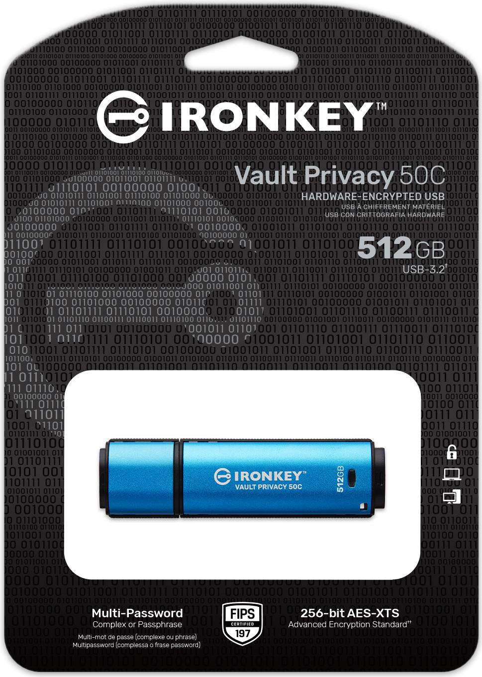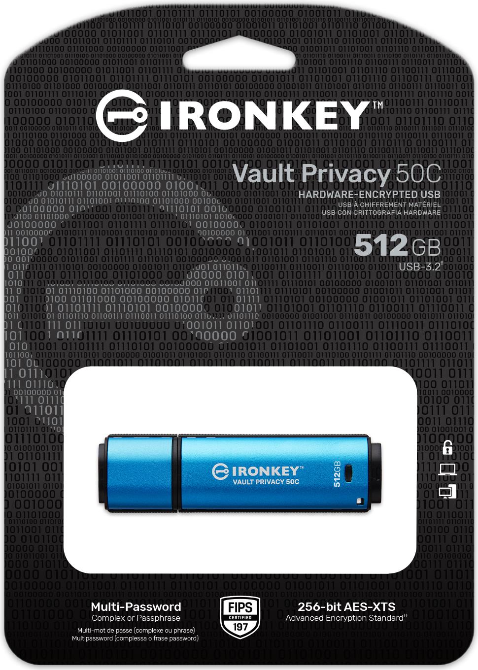 Kingston IronKey Vault Privacy 50C IKVP50C - USB-Flash-Laufwerk - verschlüsselt - 512GB - USB 3,2 Gen 1 - TAA-konform (IKVP50C/512GB)