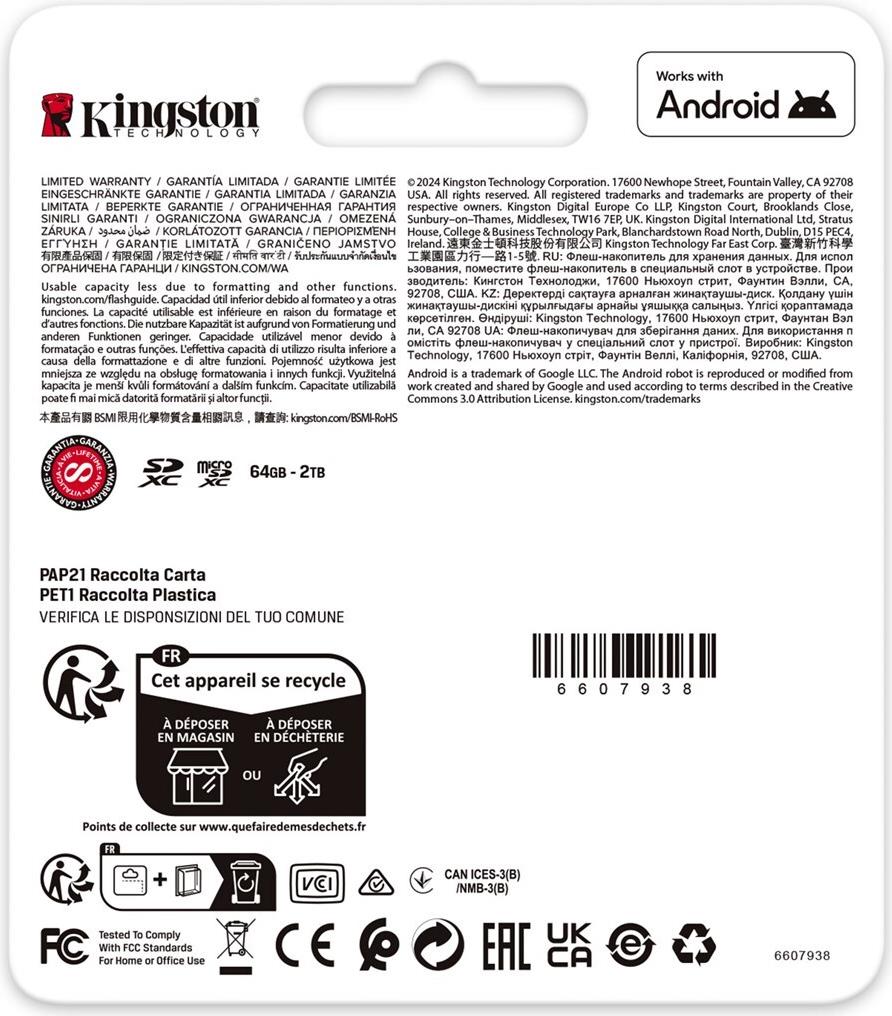 Diese Speicherkarte wurde für anspruchsvolle Bedingungen entwickelt und funktioniert in einem breiten Temperaturbereich mit einer Mindestbetriebstemperatur von -25 °C und einer Höchsttemperatur von 85 °C. Dank ihrer robusten Bauweise ist sie die ideale Wahl für Outdoor-Abenteuer und raue Umgebungen, in denen Zuverlässigkeit entscheidend ist. Die Kompatibilität mit einer Vielzahl von Geräten erhöht die Vielseitigkeit zusätzlich und macht die Kingston Canvas Go! Plus microSDXC-Speicherkarte zu einem unverzichtbaren Begleiter für alle, die eine zuverlässige Speicherlösung mit hoher Kapazität suchen.